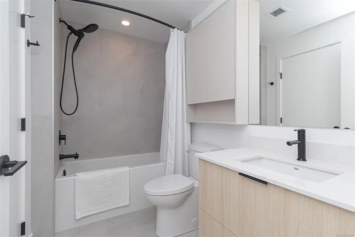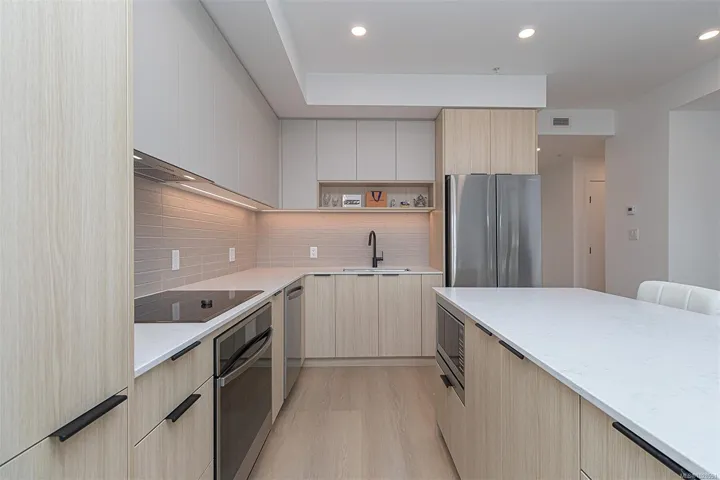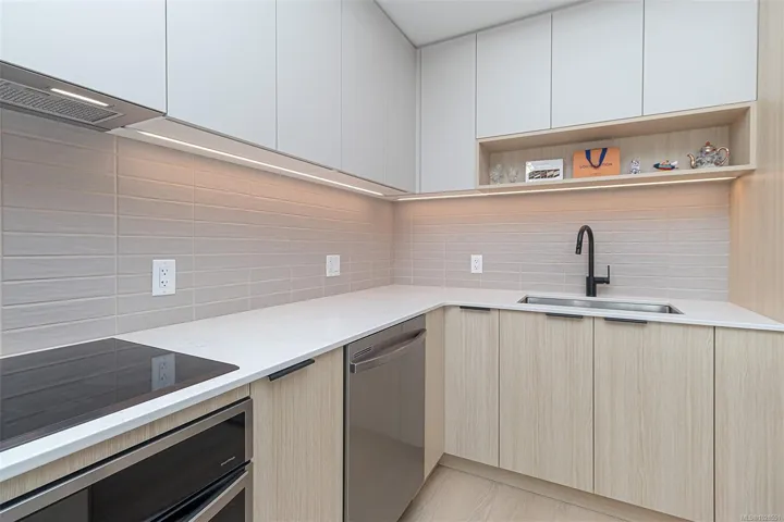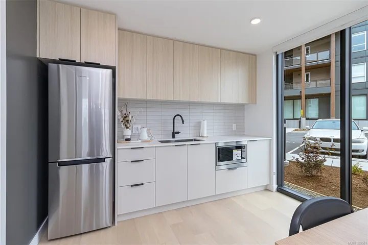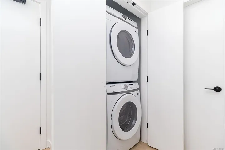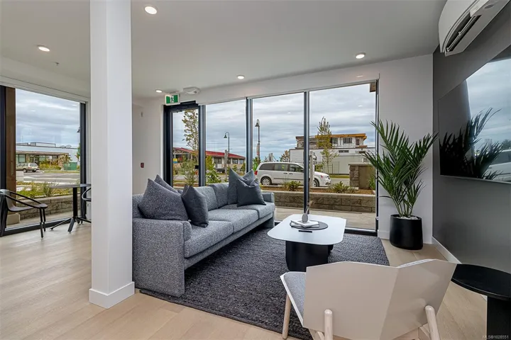 Brand New, GST INCLUDED and MOVE IN READY! Seaside living with this 1 Bedroom + Den home at ELIZA. Just steps from the ocean & walking distance to shops, restaurants & groceries, convenience is truly at your door. Inside, modern design/luxury finishes: CAD 6 construction, smart appliances, quartz island, custom cabinetry, A/C with heat pump, and 9’ ceilings. The spa-inspired ensuite and walk-in closet add comfort, while in-suite laundry and a storage locker provide everyday ease. Enjoy mountain views from your private space or gather with friends on the rooftop patio, designed to take full advantage of the setting. Residents benefit from a fully equipped gym, built-in dog wash station, and a welcoming pet policy for dogs of all sizes. This home also includes a large parking stall next to the elevator, roughed in for EV charging—perfect for today and ready for tomorrow. ELIZA offers the rare opportunity to combine oceanside living with contemporary comfort in a vibrant community.