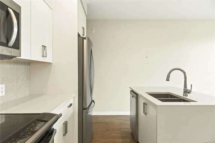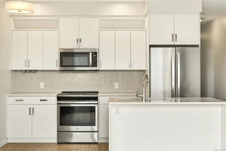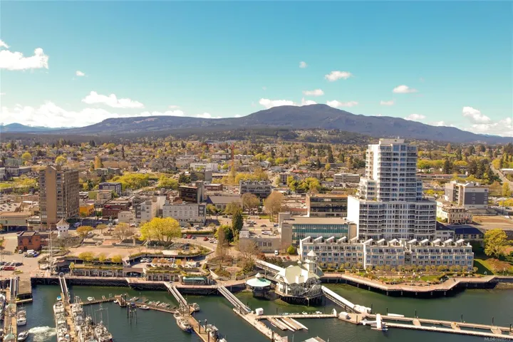 Experience the ultimate urban lifestyle in the heart of Nanaimo’s vibrant City Centre! Built in 2019, this immaculate south-facing 1BR/1BA condo captures incredible year-round sun and epic views of Mt. Benson from your private deck. The open-concept interior shines with floor-to-ceiling windows, a sleek kitchen featuring quartz counters, SS appliances, and an island perfect for entertaining. Cozy up by the custom wood-grain feature wall with an integrated elec. fireplace.