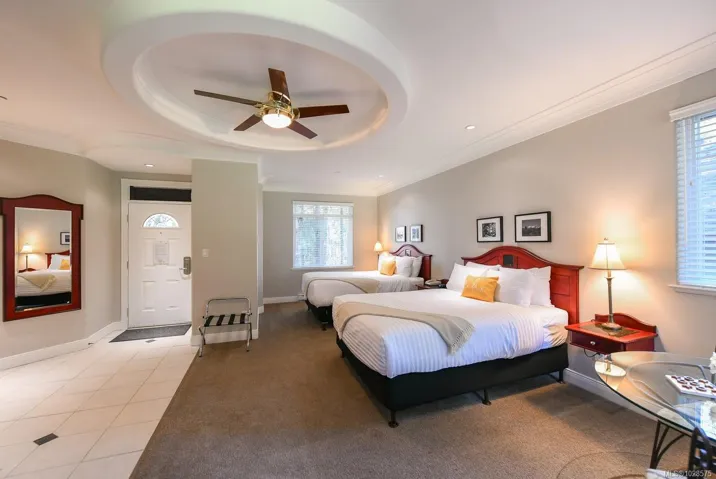 Here is your opportunity to own a quarter share Villa in the sought-after Crown Isle Resort & Golf Community. This ground-floor 1470 sq ft unit is nestled among mature fir trees along the first fairway, offering beautiful tee-to-green golf course views in a peaceful setting. The main unit features a king bedroom, full kitchen, comfortable living area with double-sided fireplace, and private patio. It also includes a lock-off second suite with two queen beds, kitchenette, and its own patio, allowing you to use both spaces together or separately. Stay in one side and place the other in the rental program for potential income, or enjoy both with family and guests. Quarter ownership provides one week of use each month, totaling 13 weeks per year. Just a short walk to the Crown Isle clubhouse with dining, fitness centre, and practice facilities. Conveniently located close to Mount Washington skiing, mountain biking, and only five minutes from the Comox Airport.