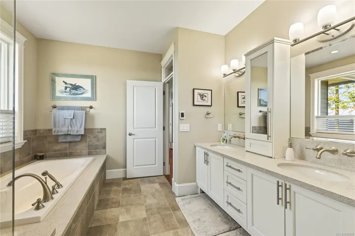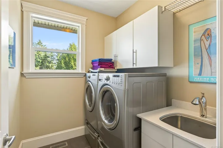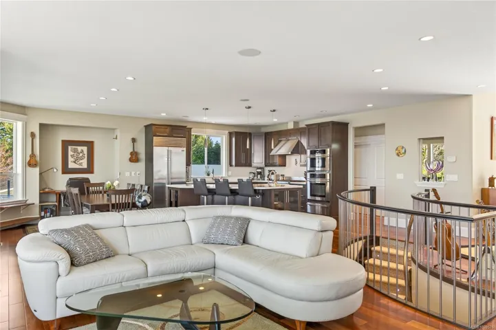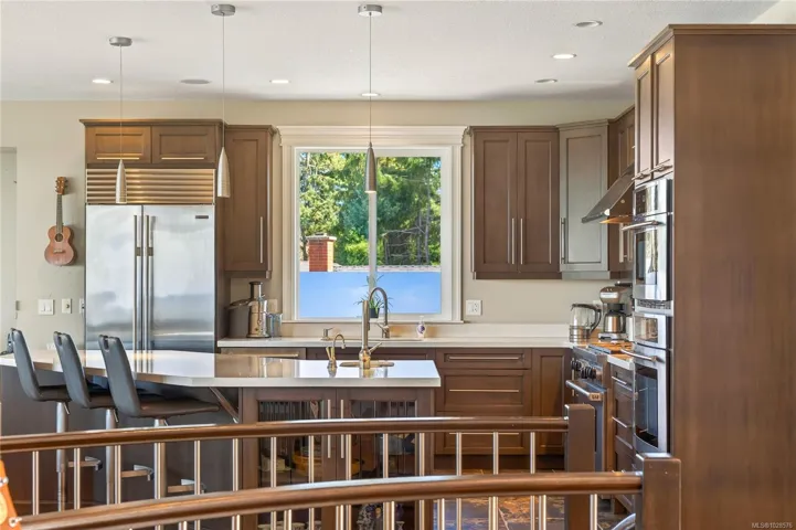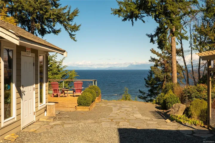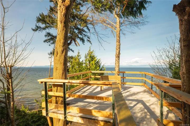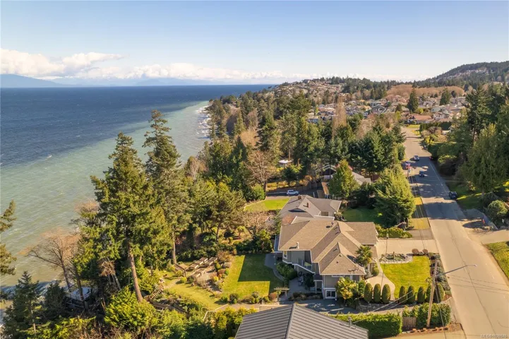 If you know Nanaimo, you know the best views come from elevation. This 2008 custom masterpiece by Brad Richardson sits on nearly 30,000 sq ft of waterfront, carved into the landscape so the ocean is the focal point of every room. Experience the “gold standard” of Island living: a main-level entry floor plan w/ open-concept layout, primary suite w/ heated ensuite & 3 gas FPs. The walk-out lower level offers unmatched versatility w/ 2 separate suites (a legal 1-bdrm w/ sep. furnace + a self-contained 2-bdrm space), both w/ private laundry, perfect for multi-gen living or luxury Airbnb. Totaling 5 beds & 3656 sq ft, the pride of ownership is evident in every detail. Outside, a private loop trail winds past signature palm trees to the beachfront, featuring custom benches & a treehouse w/ rooftop deck. Mins from Woodgrove, Neck Point & Pipers Lagoon, this rare coastal sanctuary combines elite quality w/ direct beach access. This isn’t just a home; it’s a grounding legacy property.