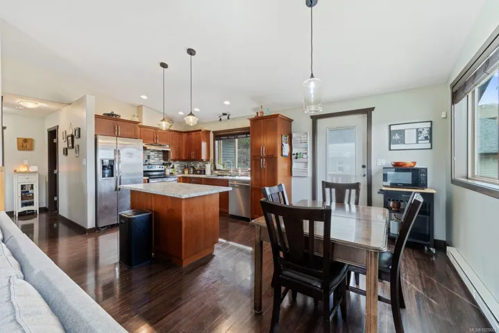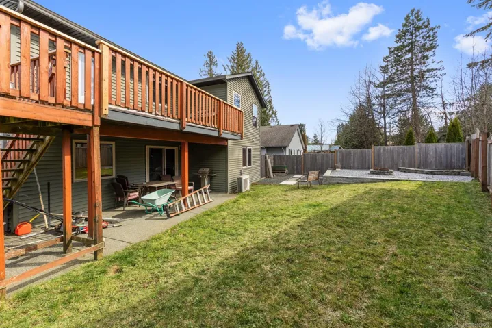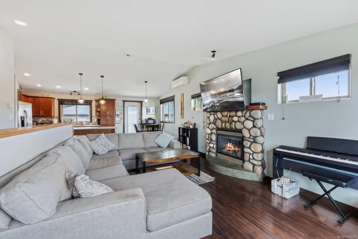 Custom built home with a legal 1 bed suite in the vibrant Village of Cumberland. Thoughtful design and quality construction offer comfortable family living with excellent income potential. The main level features a bright open floor plan with vaulted ceilings through the living room, dining area and eat-in kitchen. The dining area opens to a 20×10 deck overlooking the fully fenced sunny backyard, perfect. This level also includes a private primary bed with 2 closets and a 3 piece ensuite, 2 additional bedrooms, and a 4 piece bath. Comfort features include an economical heat pump, river rock gas fireplace, and extra insulation between floors and bedroom/bathroom walls for enhanced sound separation between the home and suite. The self contained suite includes its own laundry, covered patio and parking. Just under 2,000 sqft with a mortgage helping suite vacant at the end of March for quick possession. Minutes to Cumberland’s mountain bike trails, parks, restaurants, and vibrant downtown.