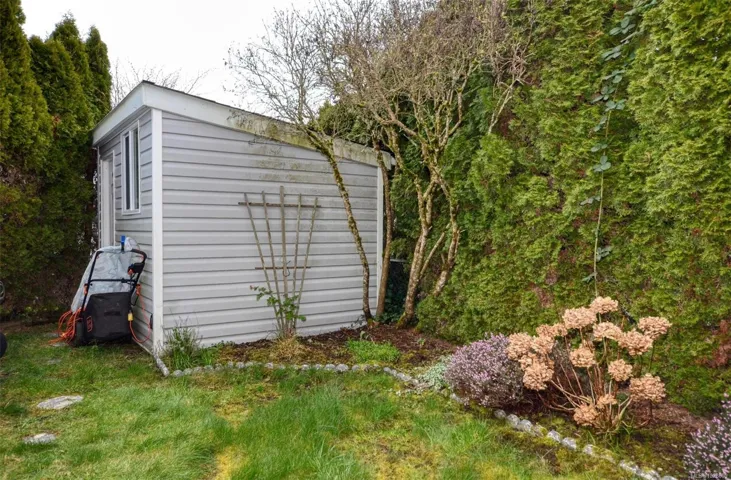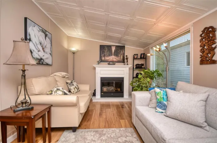 This beautiful 2 bedroom, 2 bathroom home is vacant and move in ready!. The kitchen features a center island with a Jenn-Aire range and loads of cupboard space .Upgrades include skylights, hardwood and carpets throughout the home, heat pump, new plumbing and hot water tank and roof. The property offers easy access to the fenced backyard with little maintenance needed. There are two storage spaces, one of which is a shed with wiring and a sunny back deck. The driveway is spacious and includes a carport and storage. Conveniently close to ferries and the airport and just a short drive to Sidney or Victoria. Country Park is a well managed 55+ community popular for being pet-friendly( no size restriction for dogs), well-maintained, and having a newly extended lease until 2051 and very reasonable pad fees. Residents have access to a common social building with full kitchen, pool tables, darts and a sunny patio guest suites available too.Join in the scheduled activities and meet new friends.