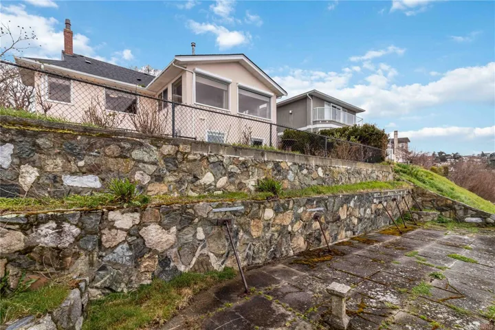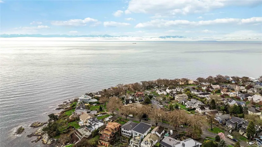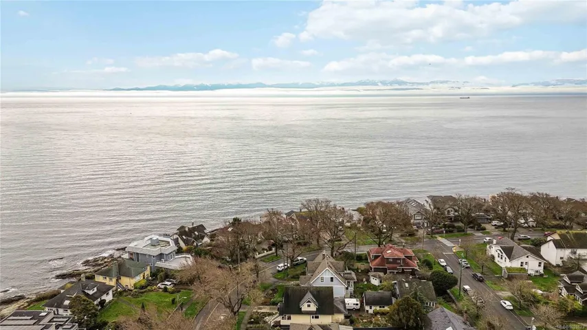 One of few true OCEAN FRONT Properties with PANORAMIC SOUTH FACING OCEAN & OLYMPIC MOUNTAIN VIEWS steps away from Ross Bay Pebble Beach! Ample parking on your brick driveway, car port, and a 1 or 2 bed massive SUITE with large living area, Natural Gas fireplace, and walk out to your private beach area with a beach hut! Enter inside your 5 bed 3 bath home to the main level and find original hardwood flooring, large kitchen area, living room with MASSIVE WINDOWS boasting natural lighting that capitalizes on the view, formal dining area, formal family room with natural gas fireplace as well as two bedrooms, an office and your bathroom with walk in shower. Head upstairs to find original fir flooring, bedroom, storage room and a 4 piece bath with tub. Lower level you will find your 1 OR 2 bed suite with 3 piece bath, laundry, and space that can be made into your hobby area. Walking distance to downtown, shopping, walking trails, Beaches, Cook St Village, Dallas Rd, Beacon Hill Park!