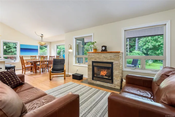 This beautiful rancher on .44 acre with CR-1 zoning offers privacy with a backdrop of gardens and mature forest. Built in 2006 this rancher with bonus room has a two car garage, crawl space and heat pump for efficient heating and cooling. Just freshly painted and a new roof installed 3 years ago. The welcoming foyer leads into a bright living area anchored by a stone-faced gas fireplace and expansive windows that frame the lush backyard. The heart of the home is the gourmet kitchen, complete with an extra-large island and an inviting dining space. The primary bedroom has an ensuite bathroom and walk in closet. There are 2 more bedrooms that share a bathroom, plus a bonus room upstairs with peek-a-boo views to the ocean. Beautifully maintained and move in ready. Enjoy the coastal lifestyle just a short walk from the historic Fanny Bay Inn, where you can unwind on their outdoor patio with sweeping ocean views, fresh local seafood, and a classic pub menu.