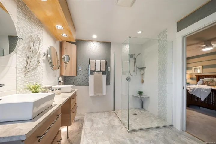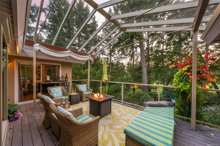 Immaculate updated rancher on the 18th Green of Fairwinds Golf course. This stunning home has been charmingly updated with designer touches. Walk or drive your golf cart onto the course, stroll across the street to the clubhouse for dinner, or entertain at home with your gourmet Kitchen and family room flowing onto the stunning deck with a vaulted custom glass cover and whimsical water feature. 3 bedrooms and an office (or 4th bedroom) all on one floor with plenty of room to gather with family and friends. Attractive landscaping with a serene granite waterfall, stone planters and thoughtfully planned pathways complete this total package which could be your ‘Dream Home’. Find your natural balance in the farm to table community of Nanoose Bay. An unfinished basement offers exceptional storage.