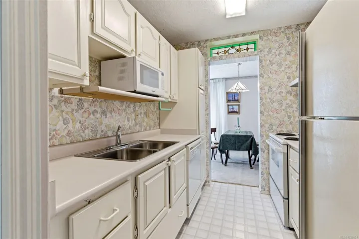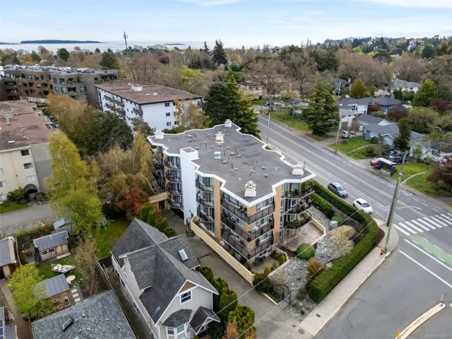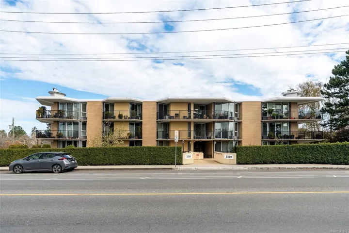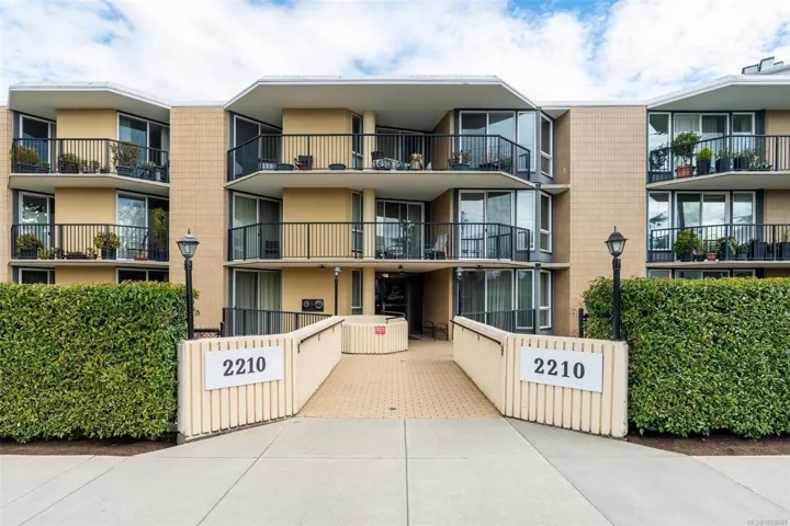Open House Sunday, Not just a fantastic location in beautiful Oak Bay, but also a coveted quiet location within the building, this large (approx 900 sq ft) 2 bed 2 bath condo is a top floor NE corner unit which enjoys natural light all day long with views of greenery from the many windows and sliding doors that access the generous balcony. This steel and concrete building is well managed with a healthy contingency fund and a well organized strata. Enjoy your morning coffee on the balcony and a cross breeze in the afternoons. A glass of wine in your cozy living room completes the day. The Lord Shaughnessy has a walk score of 64, within walking distance of the cafés and shops of Oak Bay Village, Oak Bay Recreation, and Willows Beach. It includes in-suite laundry, 4 pc ensuite, secure underground parking, a guest suite for visitors and locked storage. Bring your renovation ideas and make this your dream home. Call your realtor today.