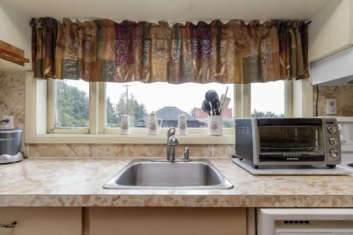 Just two blocks from the ocean, 1598 Chaplin Street sits in a walkable seaside neighbourhood close to schools, coffee shops, and everyday essentials. This 3 bedroom 1 bathroom rancher (with detached workshop/garage) offers a practical single level layout that works well as is with clear opportunity for someone who wants to update or personalize the space overtime. The kitchen offers plenty of storage and connects directly to the dining area, making it easy to stay connected during meals or casual get-togethers. The fully fenced yard provides space for pets, gardening, outdoor seating, or a play area. At the back of the property, a large shop with paved laneway access provides excellent room for projects, storage, or workspace. C2 zoning opens the door to a range of residential or business possibilities in this relaxed coastal neighbourhood.
