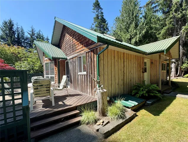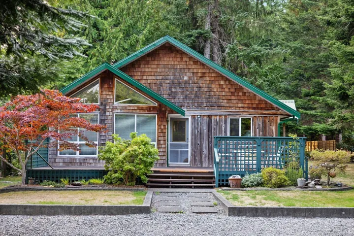 Located in one of Denman Island’s most established residential neighbourhoods, this 2-bedroom, 1-bath cedar-clad rancher offers 1,089 sq ft on a private half-acre lot, a short walk from the sandy beach and trails at Fillongley Provincial Park. The open-plan living area features vaulted ceilings and dual skylights, with a well-appointed kitchen offering oak cabinetry and a breakfast peninsula. Two bedrooms at the rear of the home are served by a full bath. A detached garage with new roof includes a flex room, additional bathroom, and storage — suitable for a studio, workshop, or home office. The treed rear yard includes a seasonal creek and pond. Shallow well and septic in place. Priced as an accessible entry point into the Denman market with proximity to park, beach, and community amenities.