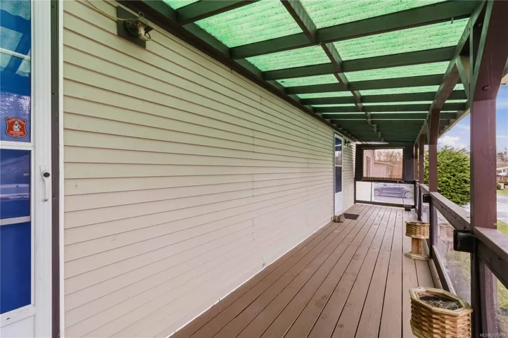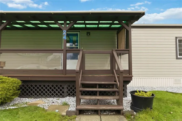 Welcome to well-managed Sooke Manufactured Home Park at 7021 Grant Rd. You’ll fall in love with this meticulously maintained early 1990’s built home, offering close to 1,000 sq.ft. of bright living space with lots of connected greenspace. This unit is cute as a button and perfect for downsizing or retirement with 2 bedrooms, 1 bathroom, & glorious one-level living. Interior features vaulted ceilings plus updated laminate and vinyl flooring. Enjoy the sunken living room with bay windows and 1 of 2 ductless heat pump heads for efficient AC & Heating, supplemented by backup baseboard/zone heaters. Country kitchen offers ample counter space and adjoining formal dining room. Primary bedroom includes a large closet and 2nd heat pump head. Outside, find a low-maintenance yard, separate storage shed, and large covered deck. Enjoy quiet & safe community living that allows pets (with management approval). On bus route and close to all amenities. All measurements approximate; Buyer to verify.