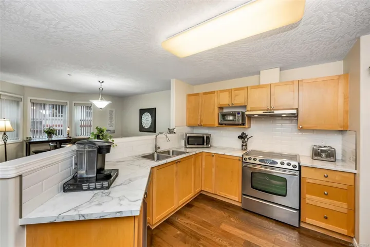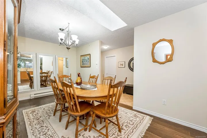 Spacious & stylish, this move-in unit in One Shady Lane offers quick occupancy! This 1453 sq ft condo is the second largest unit in the building, offering 2 bedrooms, 2 bathrooms, a separate living room with gas FP & a family room adjoining the kitchen that offers additional possibilities for formal dining/hobbies & features a skylight. Modern colour palette with engineered wood flooring throughout most of the home, refreshed kitchen & bathroom counters, new hot water tank, & reflective film on all windows. Both bathrooms feature updated sinks, taps & skirted toilets. Enjoy your morning coffee on the covered east-facing deck overlooking a beautiful century-old oak tree. The large primary bedroom includes a comfortable sitting area, & there is an in-unit laundry room. The ensuite features a walk-in tub while the main bathroom offers a regular tub/shower. Ideally located within easy walking distance to downtown Duncan & shopping & offers secure underground parking. 55+ & no pets allowed.