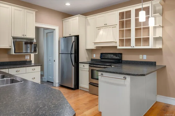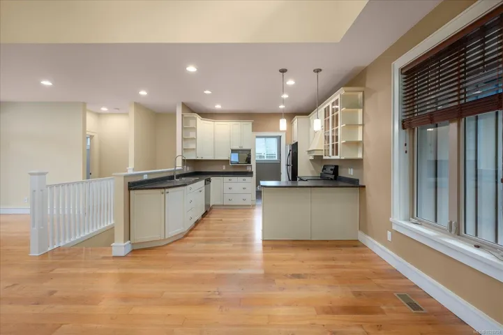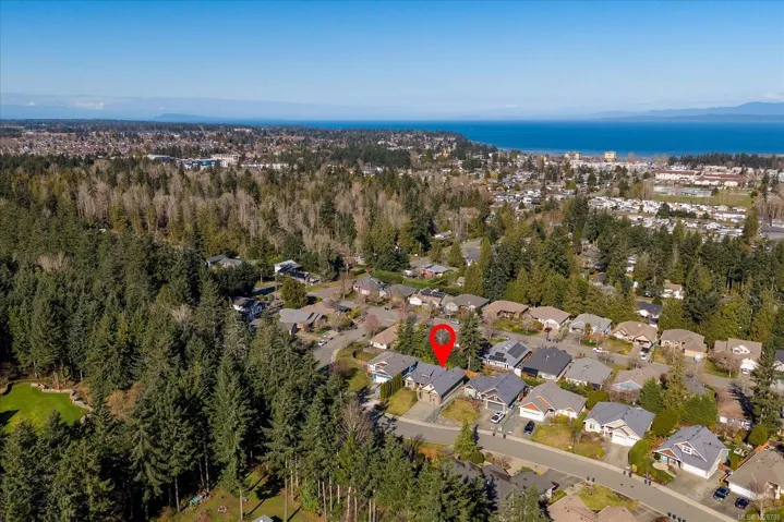 Set on sought-after Trill Dr, this main-level entry home with walk-out basement captures the beauty of island living. Located in desirable Corfield Glades just steps from Shelley Creek Park, this bright home offers spacious living in a neighbourhood known for its peaceful setting and pride of ownership. Soaring 16-ft ceilings, oversized windows, and warm western maple floors fill the open-concept great room with natural light, while the kitchen with antique white cabinetry and stainless steel appliances is ideal for entertaining. The primary suite features dual sinks and a relaxing soaker tub, while two additional bedrooms upstairs provide space for family or guests. The walk-out basement offers two generous bedrooms, a second living room, a bonus room and extra storage. Built with silent floor joists and suite potential, this home was designed for flexible living. Outside, the property also offers an irrigation system and RV parking, adding convenience to this move-in ready home.
