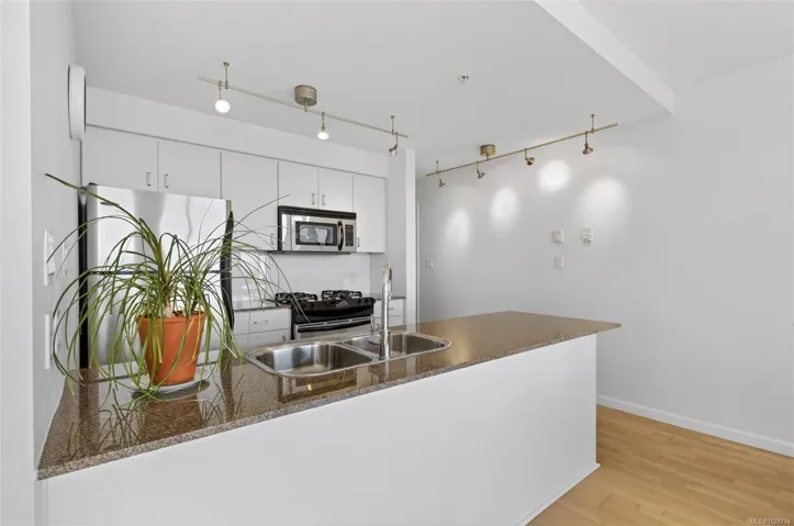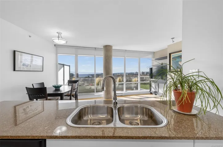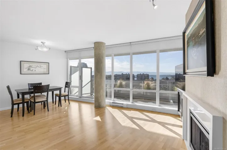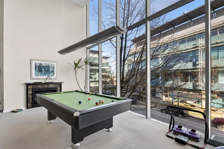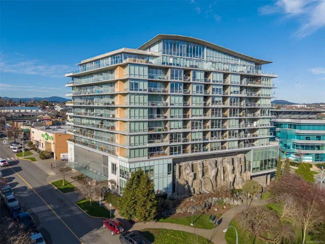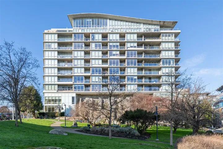 Location truly sets this home apart. This bright and sun-filled two-bedroom corner condo is ideally situated with every amenity at your doorstep making it easy to leave the car at home. With only one shared wall, the home offers exceptional privacy and quiet living. Floor-to-ceiling windows flood the space with natural light and open onto a generous deck with sweeping views over the park, stretching toward the harbour and Olympic Mountains. The well-designed layout features two spacious bedrooms, including a primary suite with a walk-in closet and full ensuite. Beyond the home itself, the building delivers outstanding value with its park-like setting, convenient access to transit and bike routes for an easy commute downtown, EV-ready parking options, a well-equipped fitness centre and a stylish residents’ lounge complete with a pool table is perfect for entertaining. A rare opportunity to enjoy privacy, views, and an unbeatable location. Book your showing today