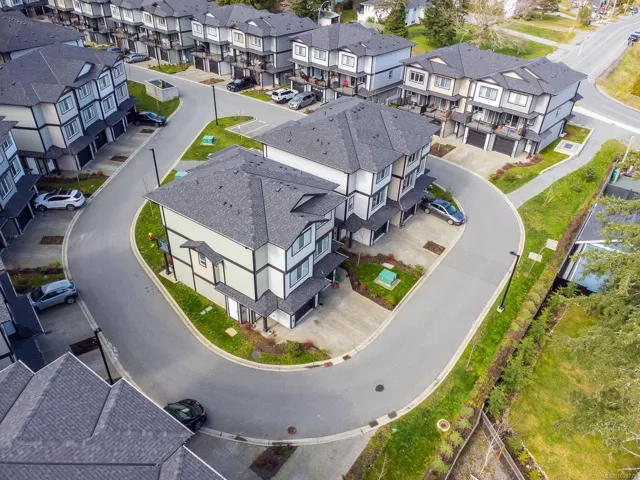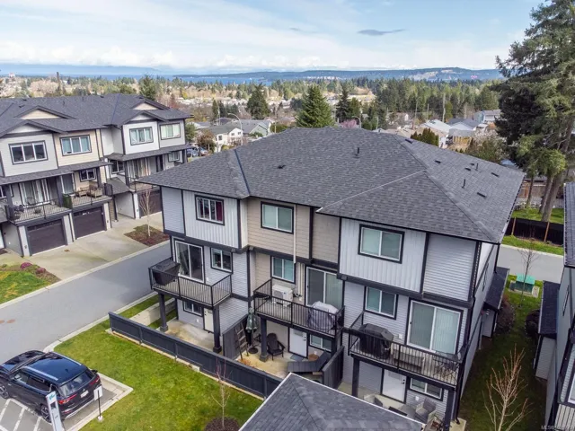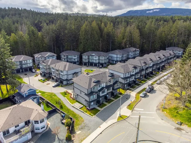 Designed with modern living in mind and located in a convenient Nanaimo neighbourhood, this well-appointed 3-bed, 4-bath townhome offers 1,596 sqft of functional living across three levels. Its versatile layout offers flexibility for families, guests, or a dedicated work-from-home setup, while a recently added heat pump and blinds ensure year-round comfort. The main floor features a bright kitchen with matte white shaker cabinetry, honed quartz counters, stainless steel appliances, and access to a balcony for easy indoor-outdoor living. Upstairs are two bedrooms with 9’ ceilings, including a primary with an ensuite, along with a full main bath and laundry. The lower level adds flexibility with a third bedroom, 4-piece bath, and direct outdoor access to a patio. An attached garage provides secure parking and storage, while nearby trails, recreation, transit, and amenities add to the appeal. Measurements are approximate and should be verified if important.