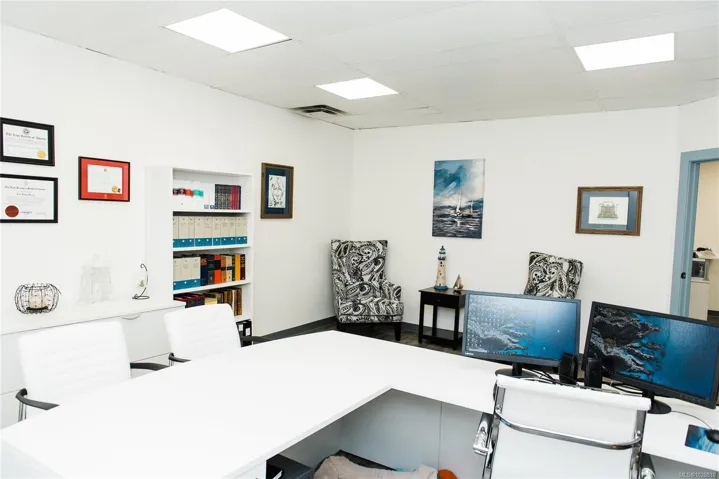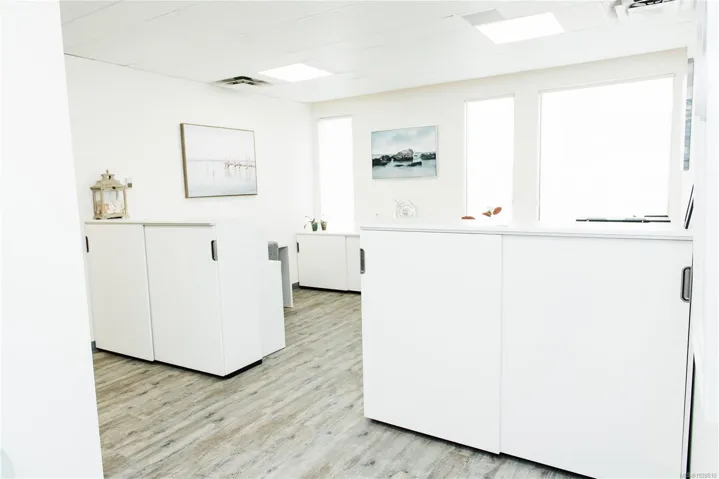law office with two large private offices, spacious meeting room, reception area, open office space, staff kitchen, and storage area. The Cliff Centre is a modern three-storey office building located in the downtown core within easy walking distance to restaurants, services, the courthouse and the waterfront. The building is fully air conditioned, wheelchair accessible, and serviced with Shaw fibre optic and ample power. Large windows provide abundant natural light throughout the unit. Convenient and affordable parking is available at the nearby Bastion Street Parkade. Additional rent for 2026 estimated at $13.60 per Sq Ft.