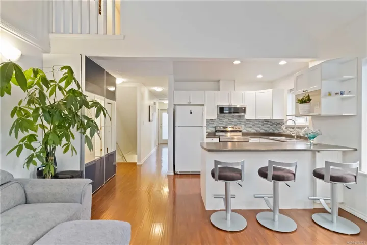 IMPROVED PRICE! Brimming with charm and convenience, this 2-bedroom, 3-story townhome sits in the heart of Langford—steps from cafés, restaurants, and shopping. This bright corner unit has been freshly painted and features a new backsplash, hard surface floors, and an updated bathroom for a clean, move-in ready feel. The main level offers soaring vaulted ceilings, an eat-up kitchen bar, smart storage, a bedroom, and a full bathroom. Upstairs, the loft-style primary suite overlooks the living area below, creating a private retreat. Located directly across from the popular House of Boateng, this home boasts an unbeatable walk score, great transit options, parking, nearby schools, and easy commuter access. Stylish, low-maintenance, and full of light—discover your next home where it all happens in Langford!