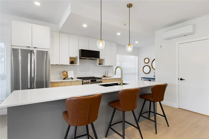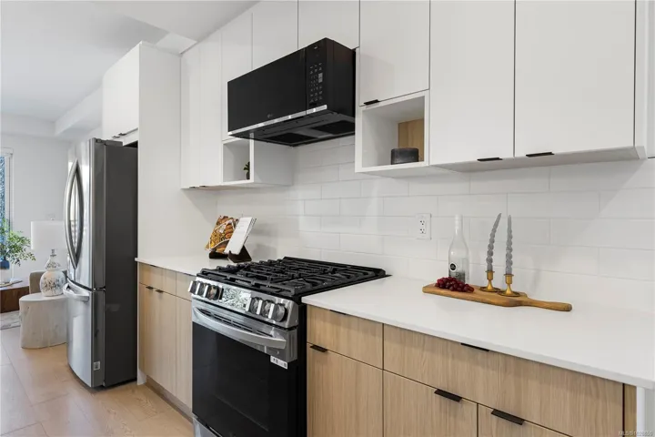 SHORT TERM BUYER INCENTIVE OF $10,000 ON 1 BED AND $15,000 ON 2 BED UNITS – Welcome to Millstream Residences. This functional and thoughtfully designed 3 bedroom 3 level townhouse with 2 living spaces, 4 bathrooms, and den offers 1,954 sqft of living space as well as a large patio, perfect to enjoy during the warm summer months. The open living space features oversized windows that flood the space with tons of natural light, durable neutral flooring and matte black hardware and details throughout that anchor the home. The kitchen features SS LG appliances, quartz countertops and island and two-tone cabinetry with ample room for storage. The building features a large outdoor space where you can connect with your neighbours and enjoy the green spaces, seating, fire tables, BBQ’s and playground. Centrally located in the heart of Langford, you are just minutes from amazing amenities and recreation, schools, hiking trails, parks and lakes. PRICE + GST – 2 PARKING STALLS INCLUDED