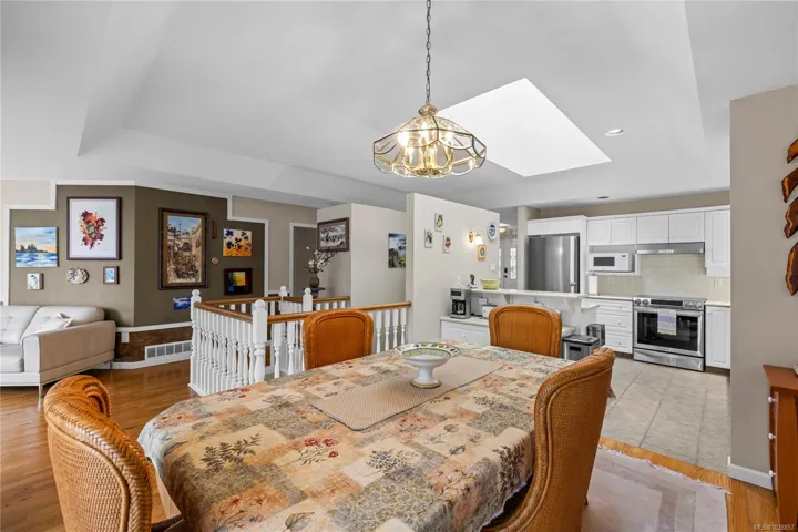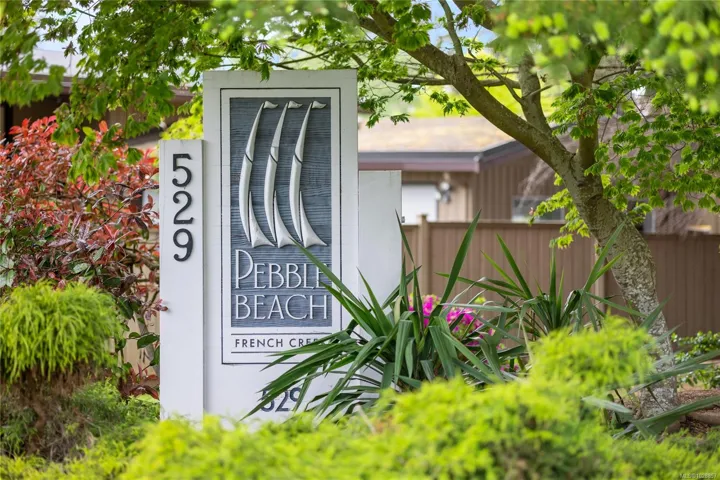 Welcome to Pebble Beach, a gated oceanfront community in the charming seaside area of French Creek. This beautifully updated 3-4 bedroom, 3 bathroom townhome offers 2,566 sq ft of bright, comfortable living with main-floor living and a fully finished walk-out lower level. Large windows and skylights fill the open-concept living space with natural light, while hardwood floors, a cozy fireplace, and natural gas forced air provide year-round comfort. The kitchen is well appointed and flows easily into the living and dining areas. The spacious primary bedroom includes a 4-piece ensuite, with additional flexible space below ideal for guests, office, gym, or a 4th bedroom. Enjoy peaceful pond, mountain, and ocean views, plus direct access to a private beachfront just steps away-perfect for relaxing and evening swims. Enjoy the detached double garage RV parking, community garden, and clubhouse, all just minutes to Parksville and Qualicum Beach. Book you showing today!