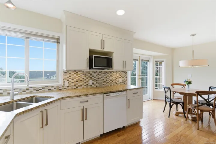 Welcome to this beautiful well-maintained home tucked at the end of a quiet cul-de-sac in desirable North Nanaimo, offering peek ocean views & a private backyard. This spacious residence features 5 bedrm & 3 bathrm, just minutes to shopping, restaurants & amenities, within walking distance to schools & steps to transit. The main level features 3 bedrms 2 bathrm, a formal living & dining room with gas fireplace, a bright open kitchen renovated in 2008. A cozy family room with gas fireplace opens onto a private rear deck overlooking the peaceful backyard with lane access and a large hot tub. The lower level was previously configured as an in-law suite with separate entry, offers excellent flexibility with a family room, summer kitchen, 2 bedrooms & a full bathroom. Numerous updates include interior & exterior paint, renovated master bedroom’s bathroom with heated floors, silestone countertops, phantom screen doors & more. All information, data & measurent should be verified if important.