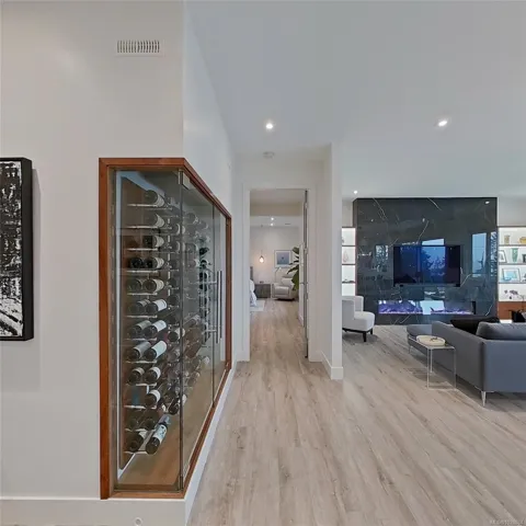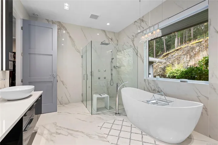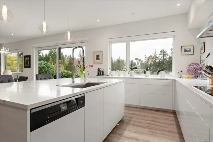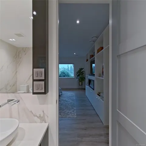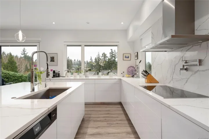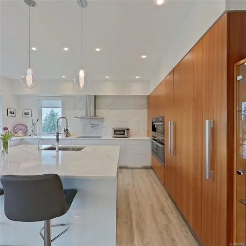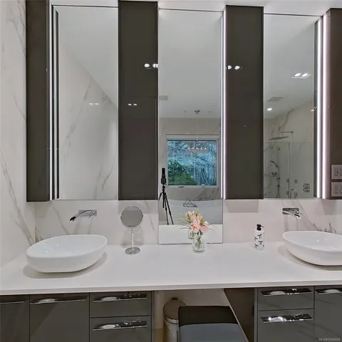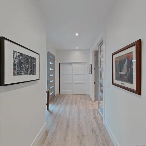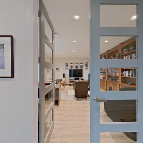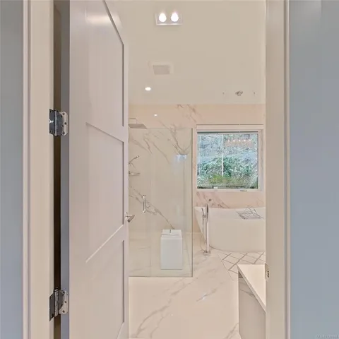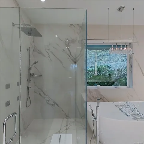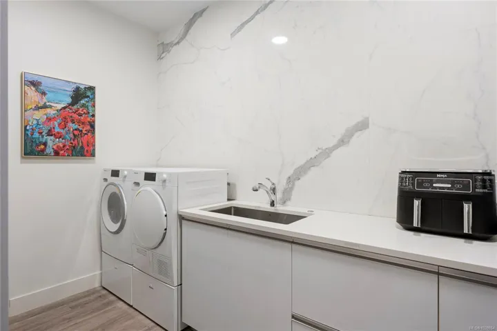 This exquisite custom-built luxury home spans over 2,500 sqft, blending sophisticated design with functional elegance. Featuring 2 bedrooms, 2 bathrooms, plus a large bonus/flex space near the entry, it easily serves as a 3rd bedroom. The thoughtfully designed layout offers in-floor heating and seamless indoor-outdoor living. The gourmet kitchen is ideal for entertaining with a large island, high-end Miele appliances, & floor-to-ceiling windows opening onto a waterfall-style patio. The main living area is anchored by a marble fireplace. The primary suite is a true retreat with a walk-in closet & luxurious ensuite fully clad in 5×10 porcelain tile slabs across walls & floors for a sleek, spa-inspired feel. These slabs extend to select exterior elements, enhancing curb appeal alongside stone & cement board siding. Outside, the manicured yard offers gated access to a path leading to the oceanfront. Steps from the 2nd hole of Fairwinds Golf Course, this home offers refined coastal living