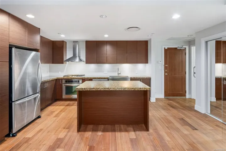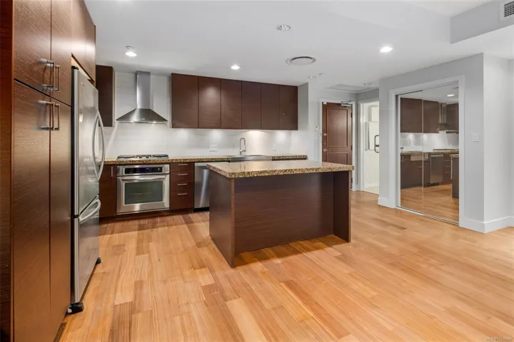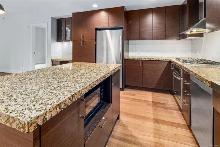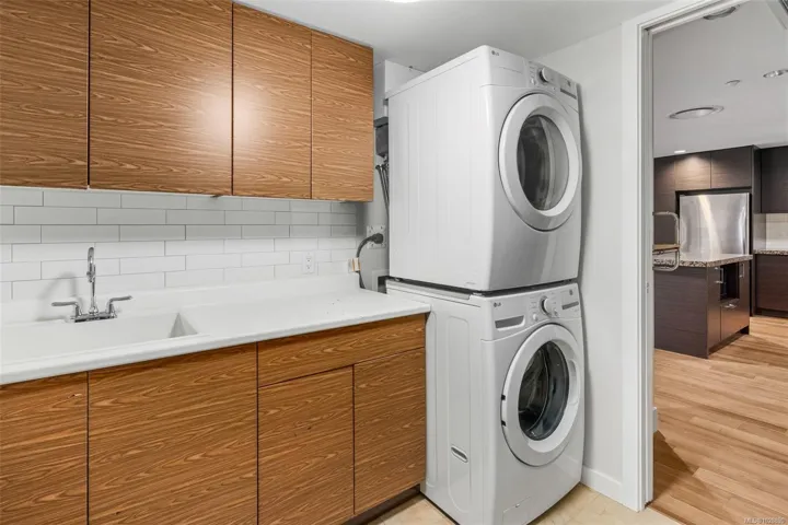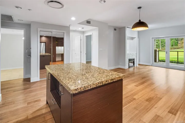Welcome to Finlayson Reach, a beautifully updated 2bed/2bath + Den condo in the heart of Bear Mountain Resort Community. This sought-after layout offers open concept living with 9’ ceilings, new flooring throughout, fresh paint, high-end SS appliances, a large island and gas range. The primary bedroom features a walk-in closet & spacious ensuite with heated floors, double sinks & a large shower. The oversized den really feels like a 3rd bedroom or office and overlooks the 1st fairway of Bear Mountain Resort’s world-renowned Mountain Course. Unit includes a full-size in-suite laundry room with storage & sink, wet bar, brand-new, just-replaced high-efficiency heat pump for heating & cooling, storage locker, and one parking stall. Enjoy golf course & greenway views from your quiet covered deck, complete with a gas BBQ hookup. Building amenities include a gym, sauna, steam room, theatre, lounge & car wash. Pet-friendly, rentals OK & steps to world-class golf, dining, tennis, hiking & more.