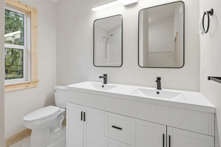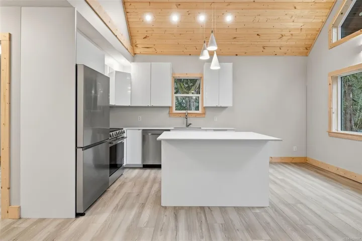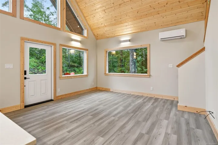 Come West They Said! 2460 Carpenter Road is located 5 minutes West of Sooke & 20 minutes from Jordan River which has some of Vancouver Island best surfing. Close to endless Provincial Beaches, Trails and Sooke’s hidden gem.. Kemp Lake, which offers Trout Fishing, Swimming and Paddle Board options. This 1.97Acre (Limited Common Property) property with a newly built 986 sq ft detached cottage w/3 bedroom & 2 bath (2 bedrms no closet) with heat pump, electric heat, soaring ceilings in main area, private primary suite upstairs. – room to build a Single Family Dwelling of your choice or simply enjoy the easy living of a smaller 1 level home. Lots of cleared area around the home & the rest is forested waiting for your plans. Property is connected to CRD Water & has full Home Warranty in place. Final Registration expected by end of March. Price is PLUS GST.