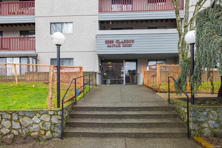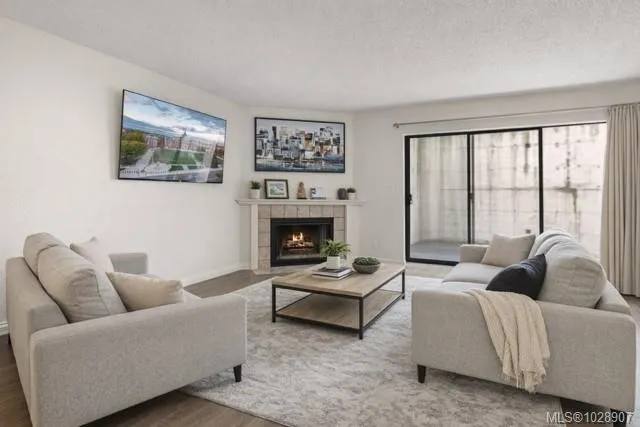 This is the one! You will be impressed with this nicely updated and move in ready 1 bed, 1 bath condo on the quiet side of the building. Spacious layout with cozy wood burning fireplace in the living room. The balcony is currently under construction to be replaced and the strata special assessment has been paid the Seller. Quick Possession possible. Unrestricted rentals, pet friendly, parking space & storage locker. Just across the street from a park to walk your dog, cafe, Mayfair Mall, Uptown, major bus routes and 10 minutes from Downtown make this the ideal location. Call before it’s Sold!