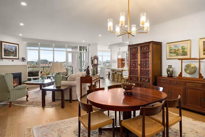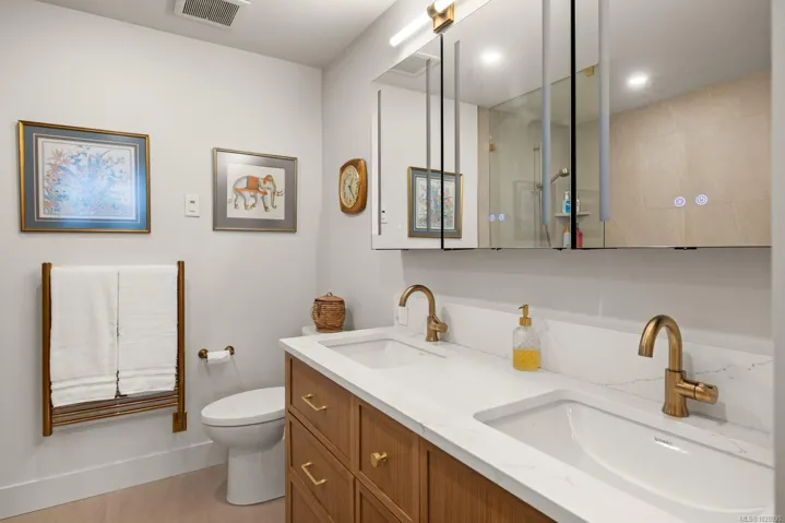 One of Victoria’s most prestigious waterfront addresses, Shoal Point presents this beautifully just completed $500K reno corner residence with breathtaking 180° views over the Inner Harbour, Fisherman’s Wharf & surrounding parkland. Walls of floor-to-ceiling windows fill the interior with natural light, creating an elegant coastal retreat. The designer kitchen features quartz counters, custom cabinetry, prem. appl. & generous workspace while enjoying ever-changing harbour vistas. Sophisticated living & family rooms each offer a gas FP, ideal for relaxing or entertaining. The spacious primary suite enjoys a private balcony & spa-inspired ensuite with heated flrs, mirrors, towel warmer & oversized W/I shower. A generous 2nd BR with its own ensuite provides excellent guest accommodation. Electric blinds, built-ins, heating/AC, secure UG parking, storage & Shoal Point’s concierge & resort-style amenities complete this exceptional offering at one of Victoria’s finest luxury residences