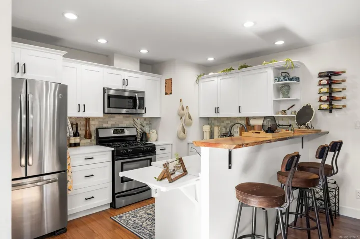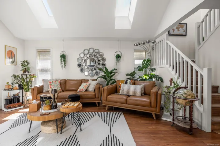 Centrally located 2-story townhouse in Langford, perfect for families! 4 bed, 2.5 bath. Bright living room with 14′ vaulted ceiling, skylights, and gas fireplace. Freshly painted, new flooring, beautifully updated kitchen, and very well maintained. Private backyard for entertaining and pets. This is a close-knit community in a child and pet-friendly complex, built in 2008. Quiet cul-de-sac by a newly renovated playground. Walk to schools, parks, Galloping Goose trail, dog park, and amenities! Its all here!