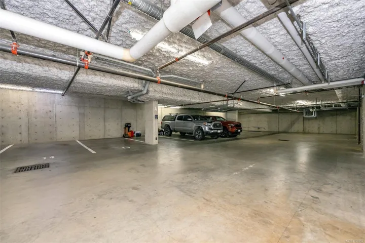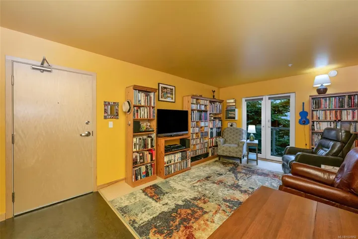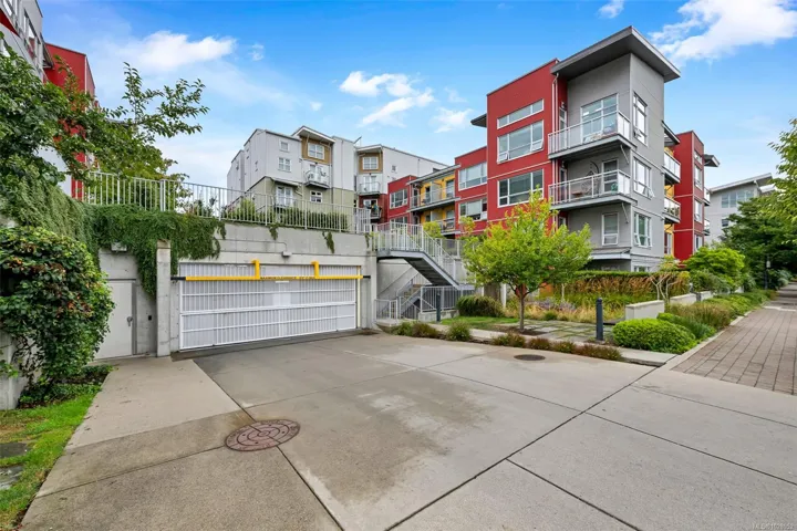 Chic one-bedroom condo in Bonds Landing featuring an open-concept kitchen with excellent pantry storage and newer microwave, range hood, and refrigerator. Bright living spaces include updated blinds and a phantom screen leading to the balcony, creating an easy indoor-outdoor flow for morning coffee or evening wind-downs. The location is exceptional—steps to Fed Urban Farm, artisan bakeries – Fry’s Bakery & Fol Epi, and outstanding coffee and charcuterie at Caffe Fantastico’s Bar-Deli. Enjoy nearby Banfield Park for swimming, paddling, and water sports, or simply relaxing by the shoreline. The secure parking garage offers racks for kayaks, canoes, and paddleboards on a first-come basis, plus locked bike cages throughout. For those who like to garden, raised beds in the courtyard are available to owners, with a waitlist at times. With direct access to the Galloping Goose, this home is ideal for walking or cycling downtown, commuting car-free, and enjoying an active, West Coast lifestyle.
