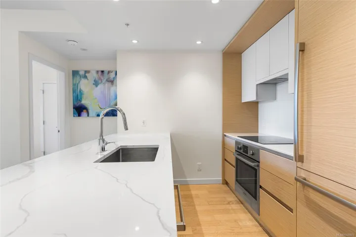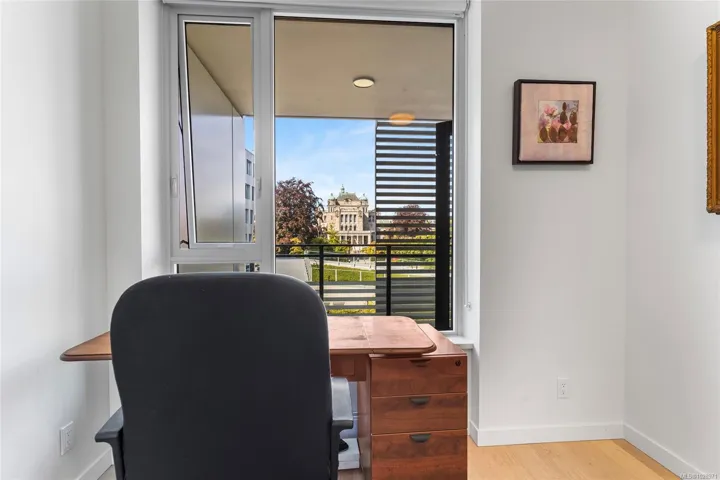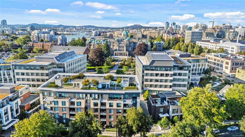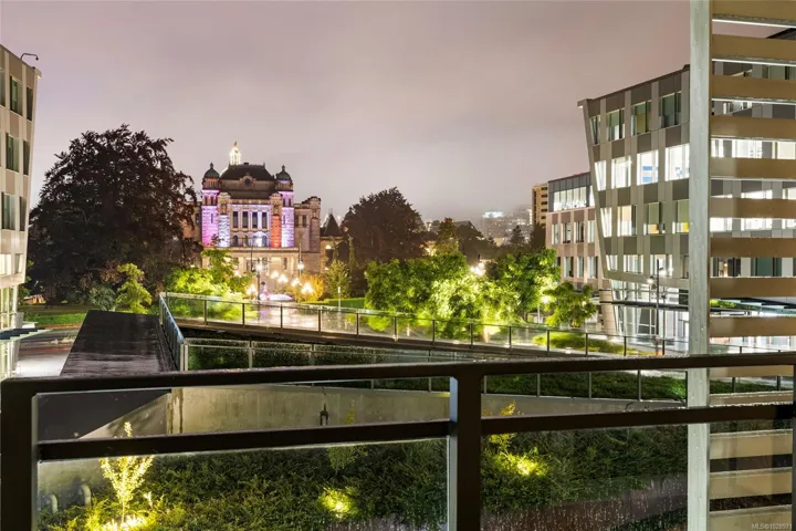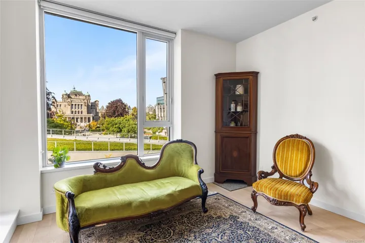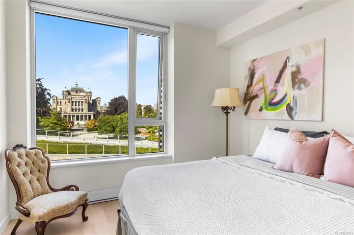 Stunning view of the legislative assembly from a 2bedroom 2bathroom condo in one of Victoria’s most loved neighbourhoods, James Bay. Located on the third floor of a high-quality steel and concrete building by Concert and Jawl Properties, this home offers a rare mix of comfort, design, & location.Enjoy natural daylight all day long in the living room,and both of the bedrooms. From the windows, take in a stunning view of the BC Legislature.The kitchen features Bosch appliances, quartz slab countertops, a waterfall island & backsplash, & custom cabinetry, a perfect blend of style & function. The contemporary layout makes the space feel open & welcoming.This unit has an easy access to Red Barn Market & the Victoria Public Library, making daily errands easy,rain or shine.This home is just steps from the Inner Harbour, Beacon Hill Park, & all that downtown Victoria has to offer. If you’re looking for a bright, well-built home in a quiet, walkable location, this one is truly worth seeing.