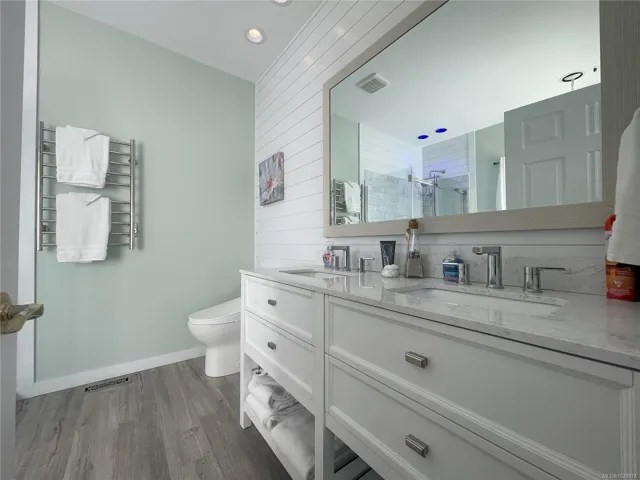 Upstairs offers heated floors, two spacious bedrooms, a full bath, and a large bonus room above the double garage. Step outside to your private retreat with walk-on waterfront, licensed dock with historic foreshore rights for kayaking or small boats, plus an in-ground pool and hot tub—a rare blend of coastal luxury and recreation. Book your private showing today.