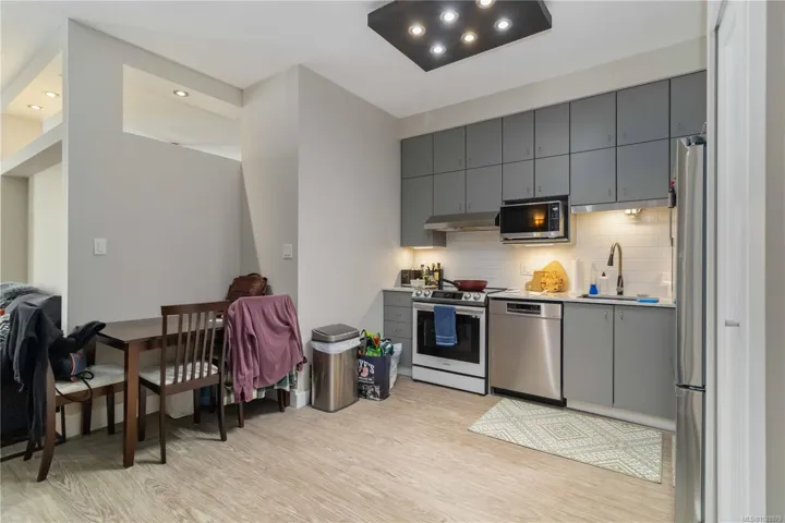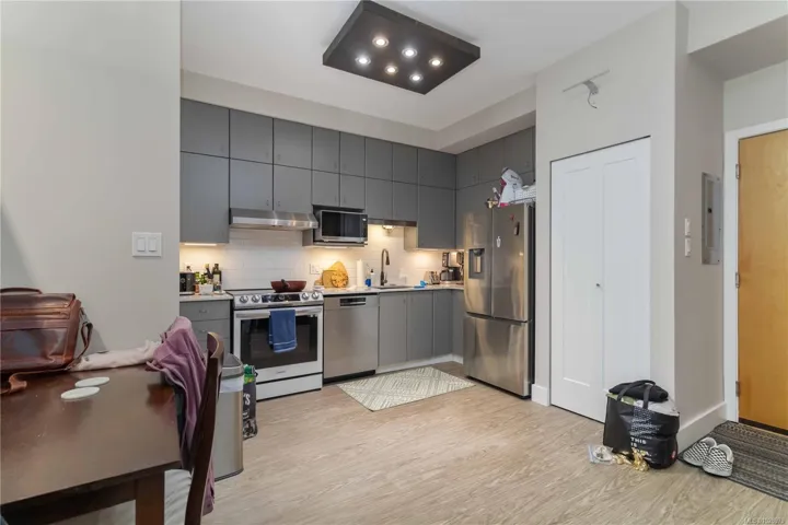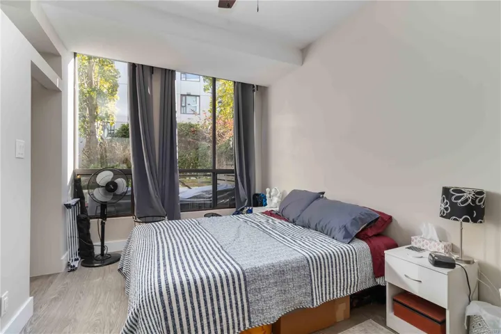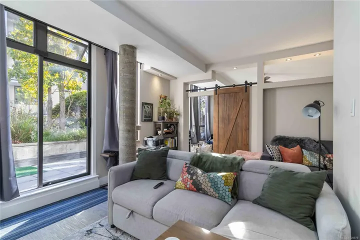 Discover downtown sophistication in the largest unit at Mermaid Wharf! This renovated 1-bedroom + den condo blends industrial charm with modern elegance, featuring stainless steel appliances, a stylish barn door, and fresh paint throughout. Soaring ceilings and oversized, south-facing windows fill the space with natural light, while a cozy gas fireplace adds warmth and character. The versatile den with a Murphy bed is perfect for guests or a home office. Step outside to your private ground-floor patio with direct access to the David Foster Harbour Pathway, offering seamless waterfront access to downtown. Enjoy shared access to the rooftop deck with BBQs and stunning harbour views, ideal for entertaining and relaxing. Just steps from the ocean, cafés, and boutique shopping, this home delivers the best of downtown living.