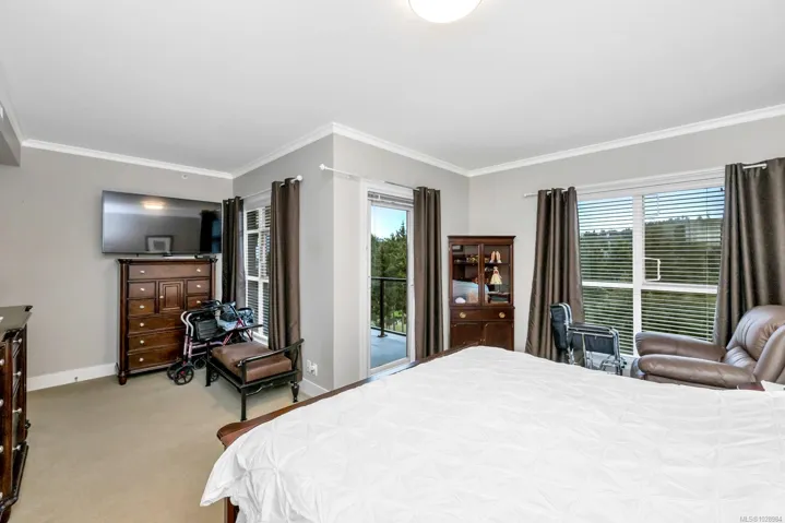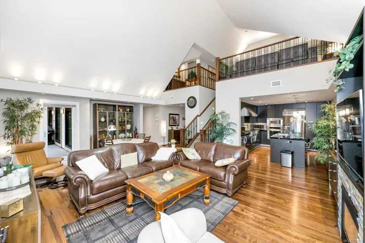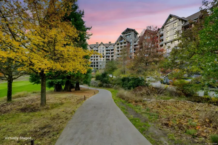 Luxury FULLY FURNISHED Bear Mountain Penthouse w/Panoramic Views. Perched on the 8th floor, this stunning 2,100 SqFt residence offers soaring lofted ceilings & expansive windows showcasing breathtaking views for miles. Rich walnut floors, a chef-inspired kitchen w/high-end appliances, gas fireplace, heat pump & upgraded LED lighting highlight the exceptional finish throughout. A dramatic loft-style bonus space with its own 3-piece bath offers ideal flexibility for guests, office, or a private retreat. Two spacious decks capture both sunrise & sunset—perfect for relaxing or entertaining. Enjoy resort-style living steps from world-class golf at Bear Mountain Resort, hiking Mount Finlayson, and the cafés and restaurants of Bear Mountain Village. Shopping at Millstream Village, Belmont Market, Costco and Walmart are minutes away w/quick highway access to Victoria. Luxury amenities include concierge, theatre, sauna, steam room, fitness centre, 2 prime parking stalls & large storage locker.