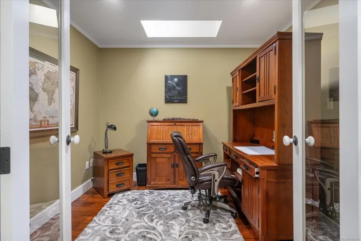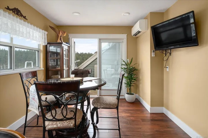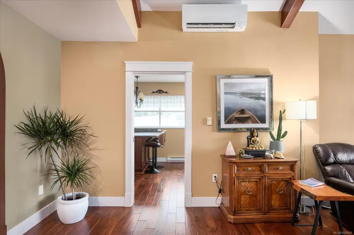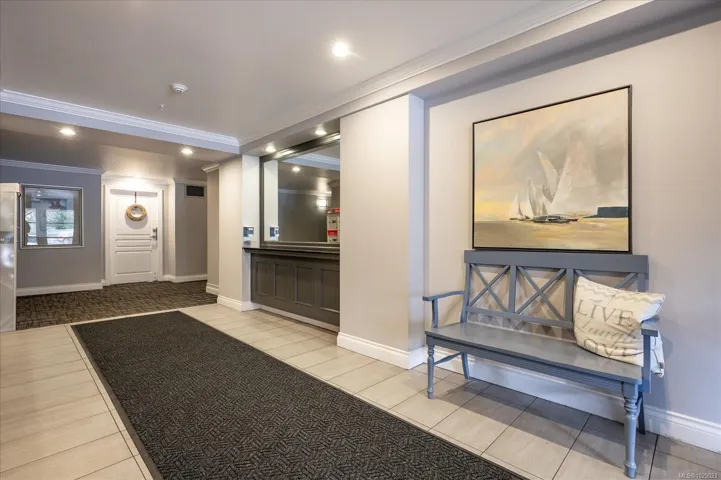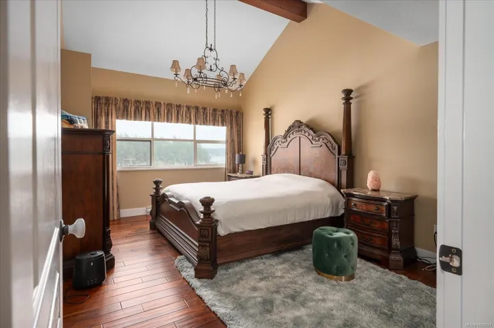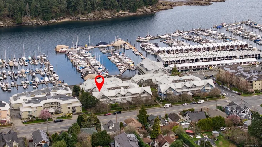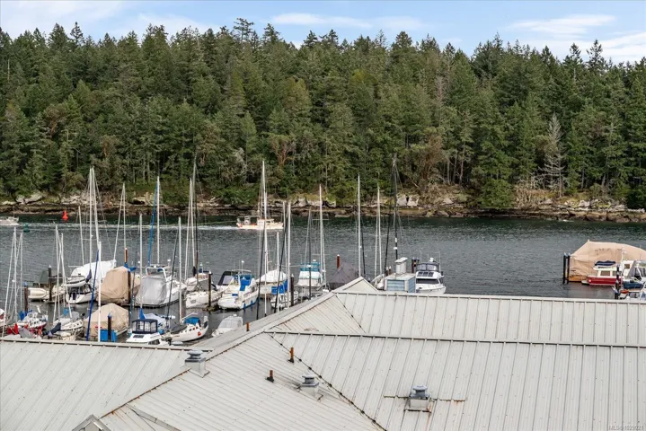 Perched on the top floor, this rare penthouse showcases sweeping 180° ocean views across Nanaimo Harbour and Newcastle Channel. Completely renovated and impeccably designed, the 2-bedroom + den home blends West Coast elegance with modern luxury. The grand arched entry opens to soaring cathedral ceilings accented by exposed fir beams, leading to bright, open living spaces that frame the ocean from every main room. The chef-inspired kitchen features quartz countertops, premium appliances, custom millwork, a walk-in pantry, and deck access for al fresco dining with a view. The spa-like ensuite offers a soaker tub, quartz vanity, makeup station, and rich custom cabinetry. Acacia hardwood floors, a stone-accented gas fireplace with solid fir mantel, and a high-efficiency ductless heat pump with A/C ensure year-round comfort. Steps away, enjoy the waterfront walkway, marinas, and vibrant coastal living just beyond your doorstep. Measurements approx.; verify if important.