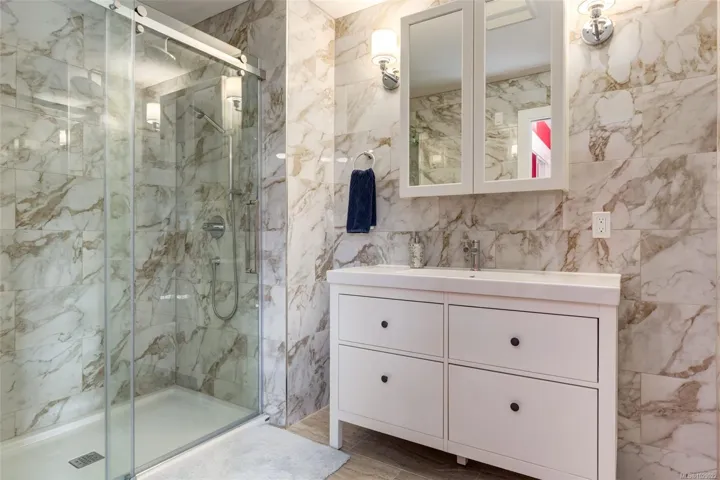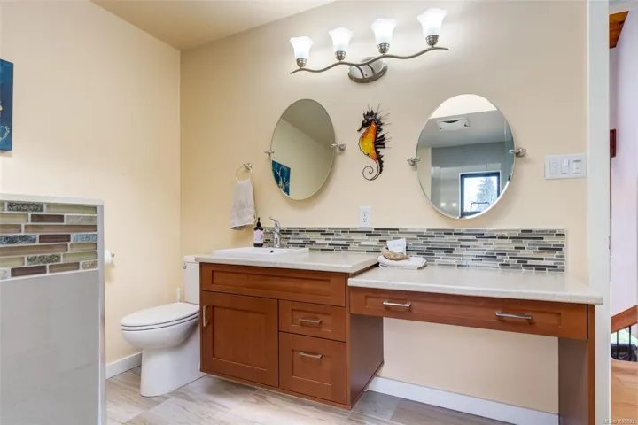 Ocean views, extensive renovations, and a rare attached 3 bedroom executive suite located beside the home rather than below make this Saltair property truly stand out. Set on an 11,000 sq ft lot just moments from the shoreline, the main residence offers 3 bedrooms and 2.5 baths with bright open living spaces thoughtfully designed for flow and everyday comfort. Quality finishes and warm details create inviting areas for gathering and daily living. A standout feature is the separate 3 bedroom, 2 bath suite offering excellent privacy and independence. Finished to a high standard with vaulted ceilings and its own ducted heat pump system, the space lives comfortably and flexibly. With numerous thoughtful updates throughout, this versatile property offers exceptional space and functionality, ideal for extended or multigenerational living near the ocean. Enjoy a spacious covered deck overlooking the fully fenced backyard.