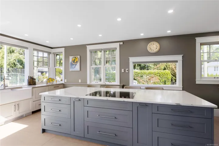 Discerning Character. Substantially reimagined, this stately 5 bedroom, 1921 residence is nestled on a sunny 12,000 sq ft lot on a private lane off prestigious Beach Dr. With more than $800K in upgrades this tranquil oasis offers a fully updated & efficient 4,500 sq ft. home situated behind custom automated gates. Substantial work includes a chefs kitchen by Urbana with huge island & an array of high-end appliances, new sunroom off the living room, new decks, new primary retreat, gas to the house for more efficient heating with 3 new gas fireplaces & boiler system for hydronic underfloor heat. New concertina doors open from the dining room to a refinished west-facing patio. The gardens are meticulously maintained with gorgeous details including multiple crevice gardens & ample opportunity for outdoor entertaining, including a new slate patio. Detached double garage. Centrally located in Oak Bay near to Oak Bay Marina, GNS Junior School & a short stroll to the Village.