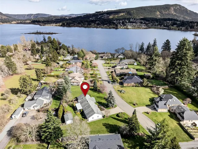 Set on just over .5 of an acre on arguably N. Cowichan’s most desirable street, this beautifully maintained and updated rancher offers privacy, space, and lake views at the end of a quiet cul-de-sac. Built in 2001, the home welcomes you with a generous entry featuring a 36″ doorway and concrete ramp designed for aging in place. French doors lead into a bright living room with cozy gas fireplace and dining area, flowing to the spacious kitchen w/ granite counters and wood cabinetry. Just off the kitchen, a den with custom built-ins, a second gas fireplace, and integrated office space creates an additional living area. Hardwood and tile run through the main living areas w/ carpet in the bedrooms. The laundry/mudroom with sink and 2-piece bath leads to the double garage w/ a Stanley-built shop setup and 200amp panel. Outside, enjoy beautifully landscaped lawns with irrigation, fenced areas, and a flex/shop space. A rare opportunity to enjoy one-level living in Lochsyde Estates. ON SEWER!