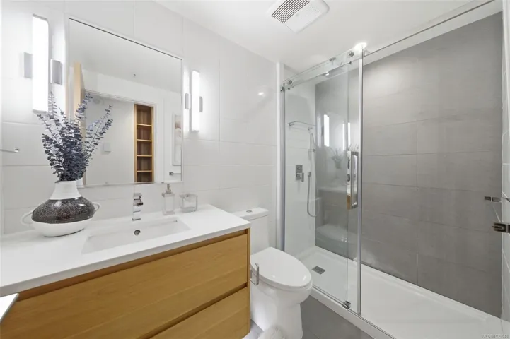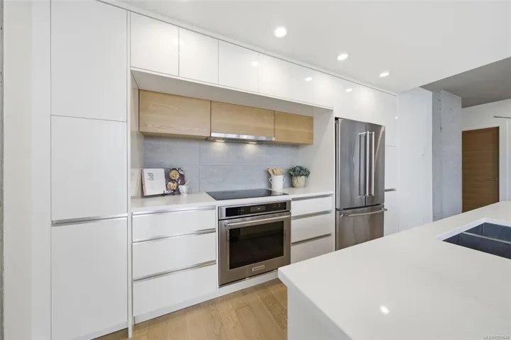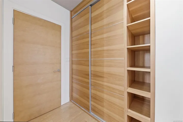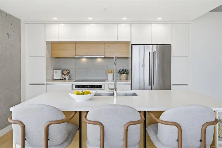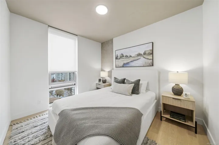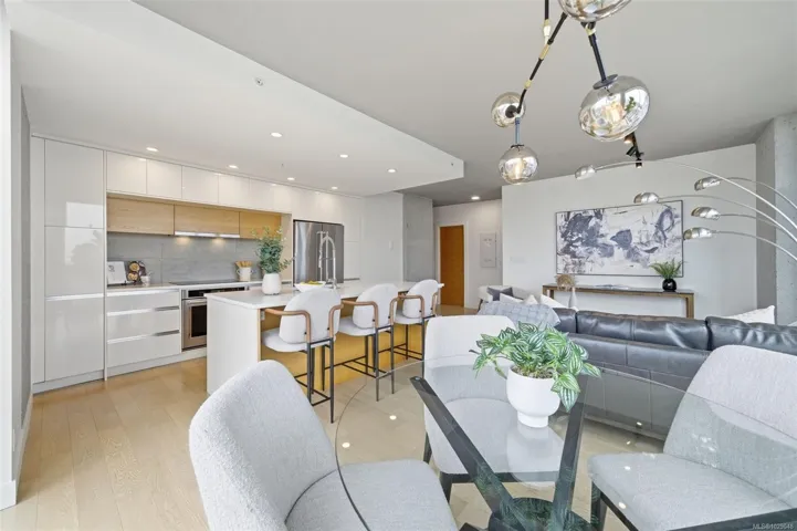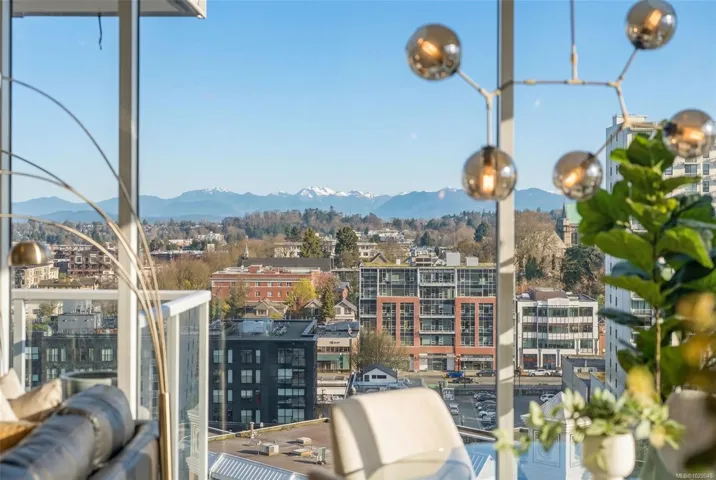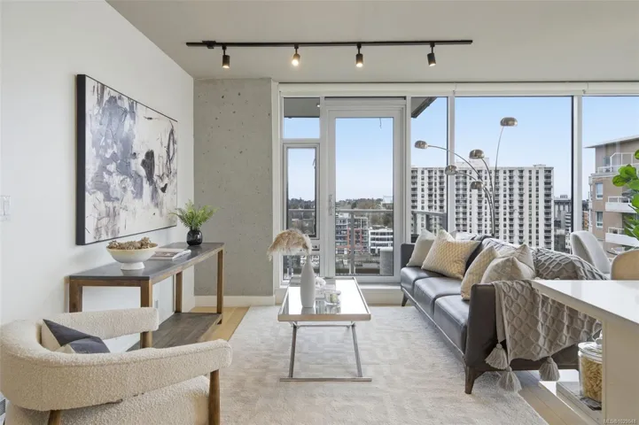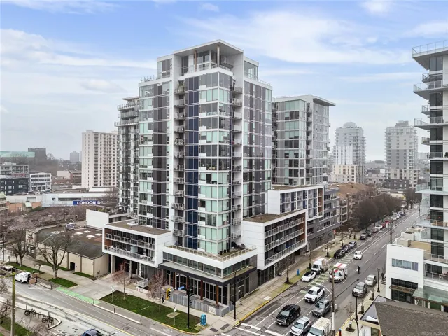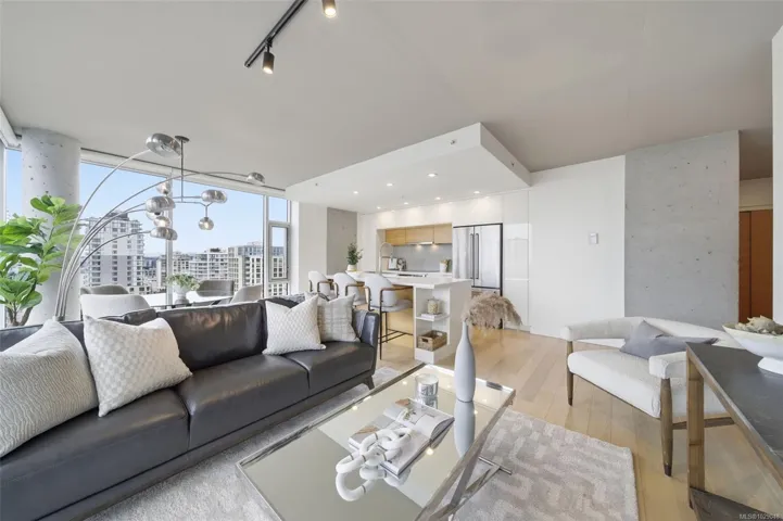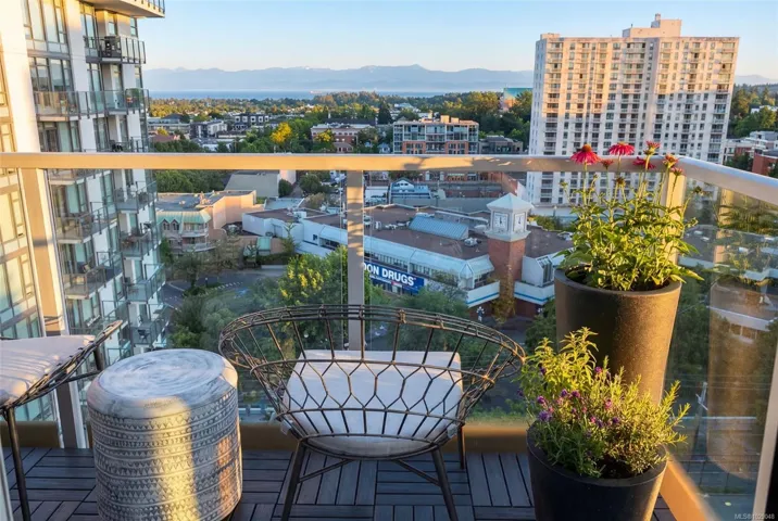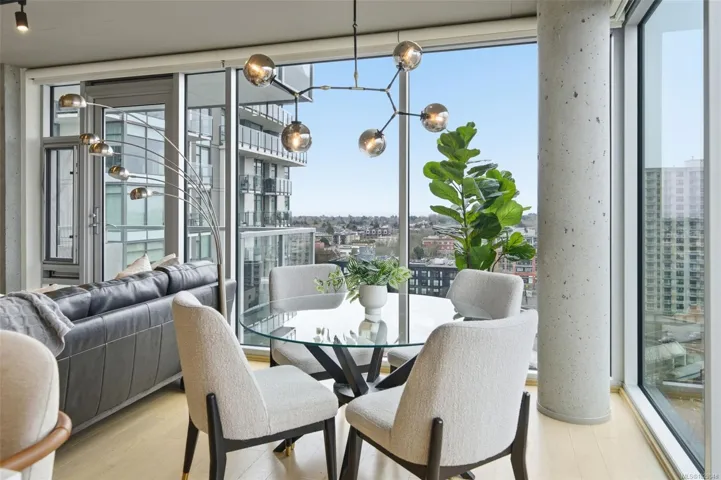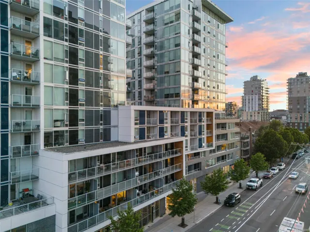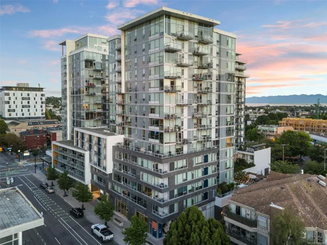 Experience elevated urban living in this stunning southwest corner unit in the West tower at 989 Johnson. Wrapped in floor-to-ceiling glass, this home offers front-row seats to Victoria’s skyline, the Olympic Mountains, and the Salish Sea. Freshly painted and meticulously maintained, this sought-after floorplan features premium upgrades like new lighting, updated plumbing, and boasts refined wood and concrete details throughout. The bright corner layout offers light oak floors and motorized blinds, anchored by a sleek quartz kitchen with an induction cooktop, KitchenAid appliances, a pull-out pantry and other quality cabinetry. This exceptionally well-run building ensures low strata fees and includes secure underground parking, storage, and a bike room. Steps from bus service and bike lanes, you are perfectly positioned near Harris Green, supermarkets, the Inner Harbour and Victoria’s best dining, drinking and entertainment. Quick possession available-this turnkey home is ready today.