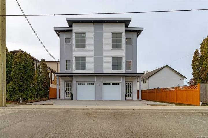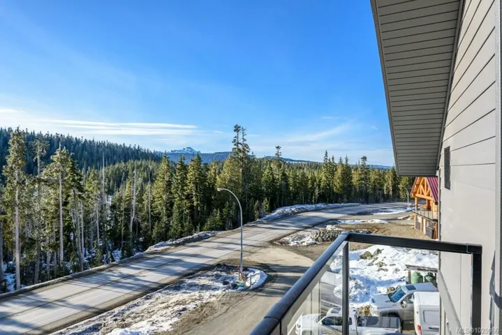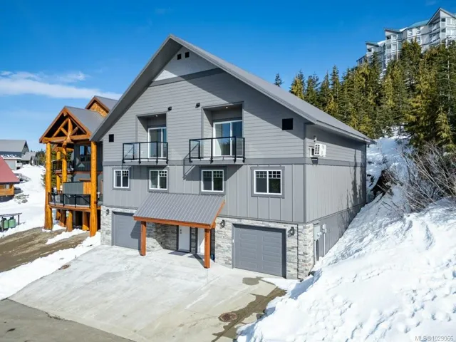 New 2,155 sq. ft. half duplex at Mount Washington, less than a 5-minute walk to the Hawk chairlift! Complete and ready for occupancy, this three-level home features 4 bedrooms on second floor, including a spacious primary bedroom with large 3-piece en-suite and laundry hook-up adds convenience. The open-concept main level third floor offers durable vinyl strip flooring, a bright kitchen with white shaker cabinets, quartz counters, and pantry, flowing to the dining and living areas. A southwest-facing balcony off the living room provides sunny views of Strathcona Park. The oversized 600+ sq. ft, double-stacking garage offers exceptional storage for vehicles and gear. Built with hardie plank siding, rock accents, metal roof, a heat pump for year-round comfort plus home warranty for piece of mind -perfect for investment, mountain living or a getaway steps from the slopes! $8000 appliance allowance included at completion.