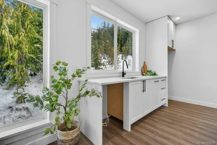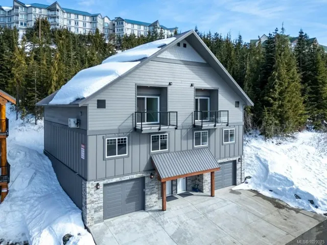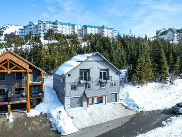 New 2,155 sq. ft. half duplex at Mount Washington, less than a 5-minute walk to the Hawk chairlift! Complete and ready for occupancy, this three-level home features 4 bedrooms on second floor, including a spacious primary bedroom with large 3-piece en-suite and laundry hook-up adds convenience. The open-concept main level third floor offers durable vinyl strip flooring, a bright kitchen with white shaker cabinets, quartz counters, and pantry, flowing to the dining and living areas. A southwest-facing balcony off the living room provides sunny views of Strathcona Park. The oversized 600+ sq. ft, double-stacking garage offers exceptional storage for vehicles and gear. Built with hardie plank siding, rock accents, metal roof, a heat pump for year-round comfort plus home warranty for piece of mind -perfect for investment, mountain living or a getaway steps from the slopes! $8000 appliance allowance included at completion.