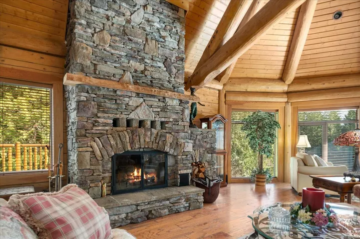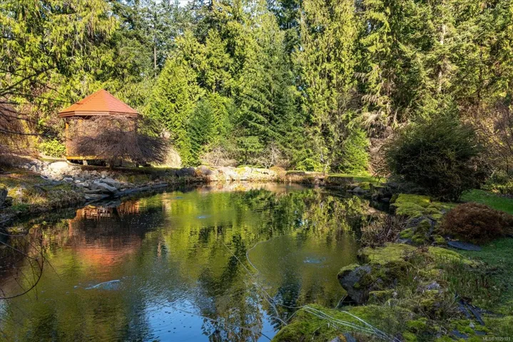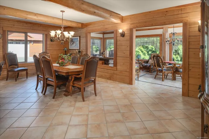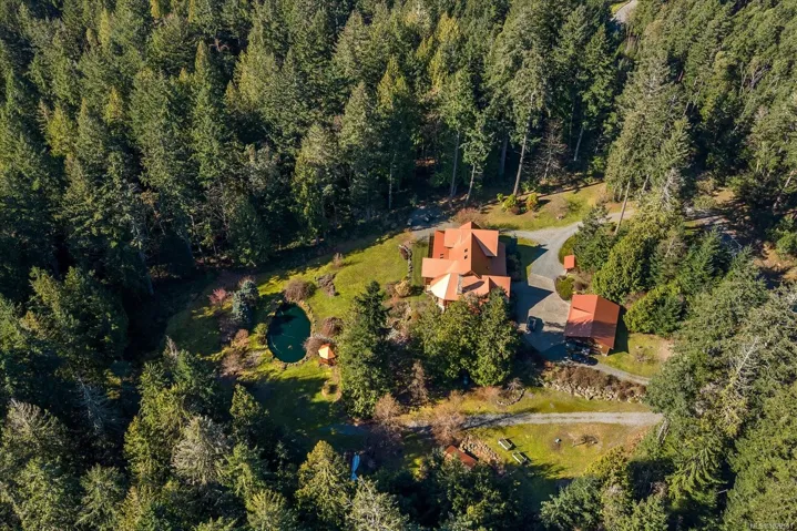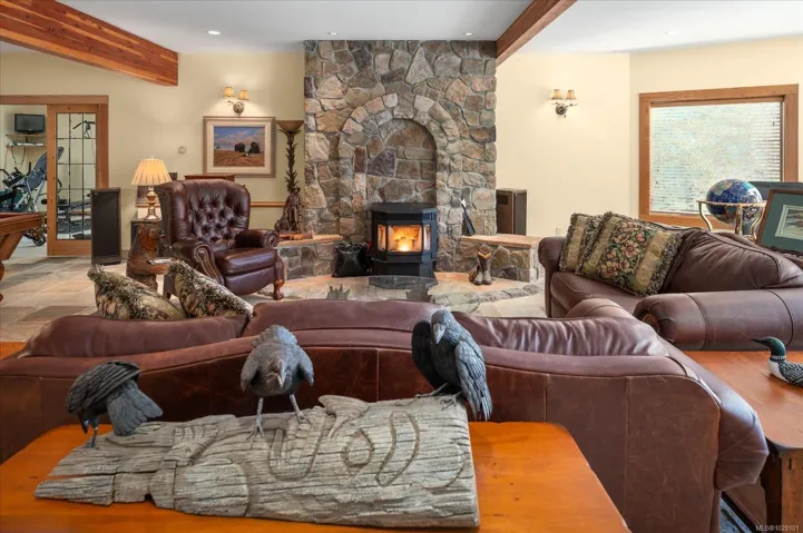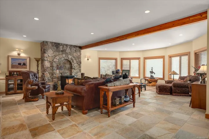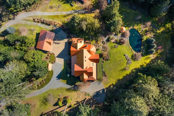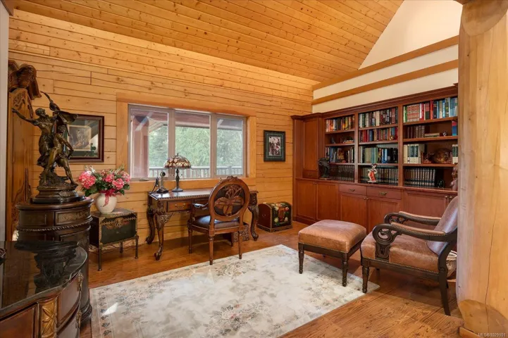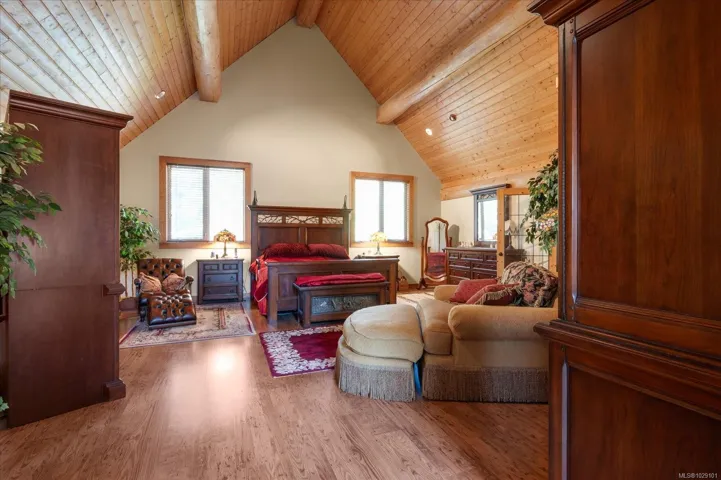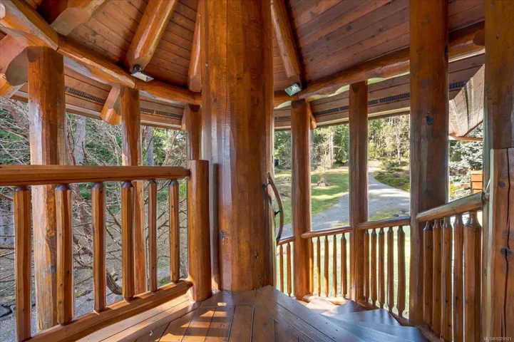 Quiet country living awaits with this impressive 8,200 Sq. Ft. custom Engelmann Spruce Log Home! Sited on 15 private acres in coveted Yellow Point, just 15 minutes to Nanaimo or Ladysmith. Exceptionally finished throughout, the residence features a breathtaking great room with grand kitchen and dining area plus a sunroom and a grand living room with a dramatic 22’ vaulted ceiling anchored by a grand stone fireplace. Perfectly designed for entertaining spaces! Bright, south-facing large decks and patio areas frame a picturesque pond and outdoor areas. The generous footprint includes 3 bedrooms (Could be more) all with their own ensuite including an incredible primary bedroom. Approx. 3 acres are cleared for gardens and recreation with a gazebo plus an RV site. With quiet country elegance, meticulous finishes, abundant storage and versatile rooms, this property blends stunning log home design with with contemporary style for year-round entertaining, quiet retreats, and future expansion.