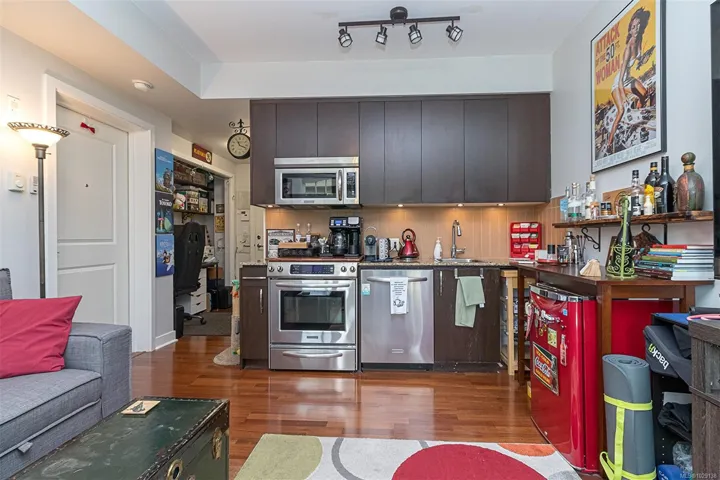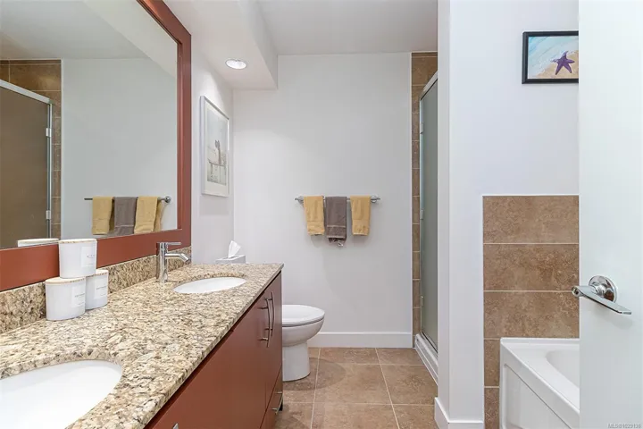 Open Sun April 26th 2:30-4 pm Condo w/Suite Potential. Located 20 mins from Downtown Victoria&5mins from Millstream Village, Langford in the Prestigious Bear Mountain Golf Resort Village, these units are in a well-maintained building that has undergone many recent upgrades incl: new carpet in the hallways, fresh paint in the main hallways, all exterior trim&balcony railings. Located in the heart of the resort on the 9th hole, this well-kept 1 bed 1 bath condo w/ laundry has a spacious kitchen w/lots of cupboard space & classy granite sit-up island. Features a big living rm w/sizable dining room space, huge windows, electric fp&private south facing sundeck overlooking green space&the fairway. Bachelor suite w/separate entrance,own kitchen area, 4 pc bath&private south facing sundeck. (Note: no laundry in the bachelor suite (set up like a hotel room) electrical panel is in the main unit, each with its own underground parking spot, mailbox&storage locker. Units to be sold together.
