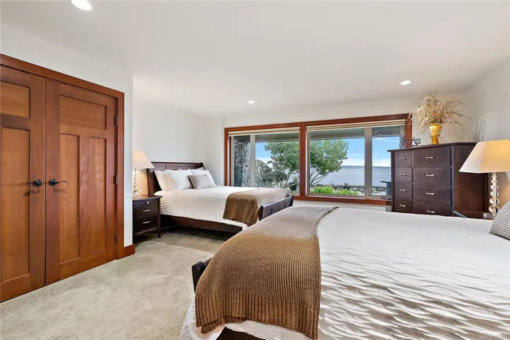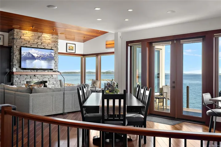 Luxury Waterfront Living in Sidney-This custom-built Roger Garside home offers the perfect blend of luxury, location, and lifestyle. Situated on a quiet cul-de-sac just a short stroll from downtown Sidney, the property is set as close to the water’s edge as possible, showcasing panoramic views of Mt. Baker, sailboats, seals, and shorebirds. A gently sloping beach invites sunset walks, beach fires, or launching your kayak. Thoughtfully designed, the home features a primary suite on the main with a spa-inspired ensuite, a gourmet kitchen, open-concept living, and walls of windows framing breathtaking views from every principal room. All bedrooms include private ensuites, while expansive decks and a patio with a gas fireplace create seamless indoor-outdoor living. Unique to this property, the beachside garage offers convenient storage for kayaks, crab pots, and gear. From the moment you step inside, you’ll be captivated by the unparalleled beauty.