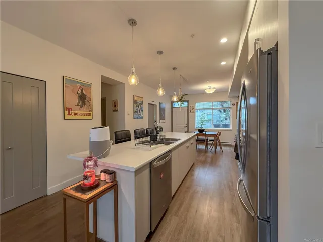 Enjoy easy Campbell River living in this beautifully designed 2018 Brownstone townhome, ideally located just steps from the beach and the scenic Seawalk. Offering the perfect blend of comfort and style, this low maintenance home might just check all your boxes! Inside, you’ll find a bright and open-concept layout with high-quality finishes throughout. The kitchen is thoughtfully designed with modern cabinetry, ample counter space, and contemporary fixtures- seamlessly connecting to the dining and living areas. The back patio is an absolute oasis featuring a serene pond- a must-see feature. This unit has a brand new hot water tank and some fresh paint. Enjoy morning walks along the Seawalk, beach fires just across the street, and the convenience of being just minutes to local amenities, dining, and recreation. The well maintained strata allows two dogs or cats with no size limit, and each unit enjoys two parking stalls and an 8×10 storage locker. Don’t wait- book your showing today!