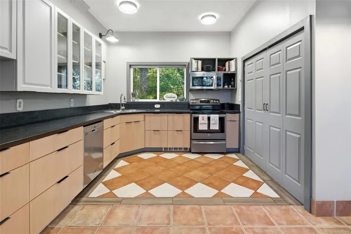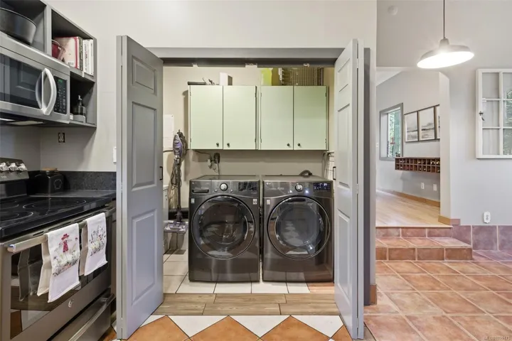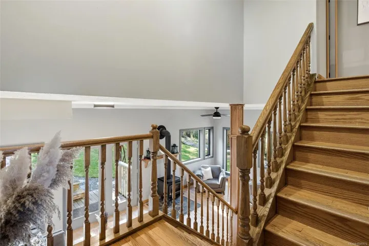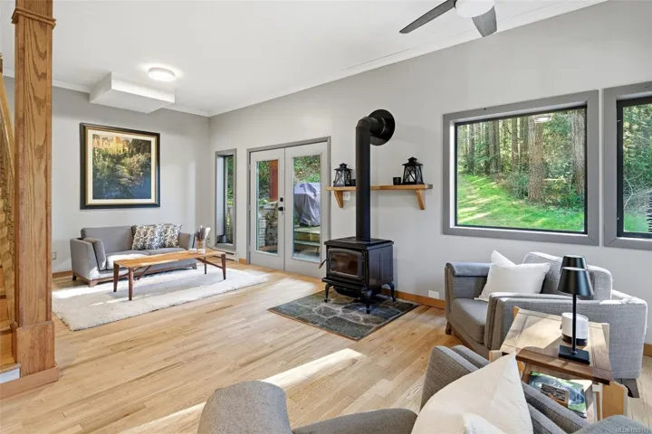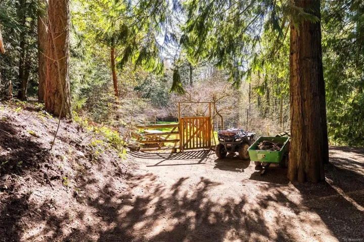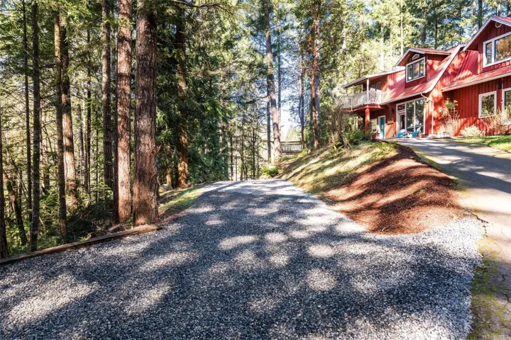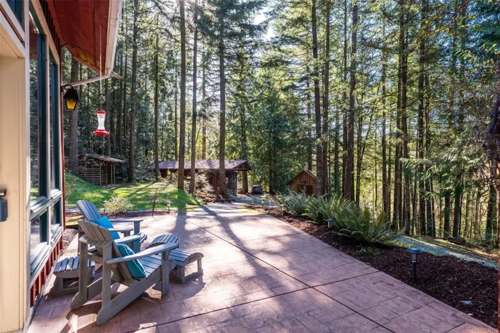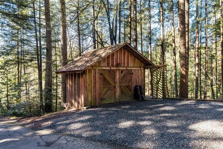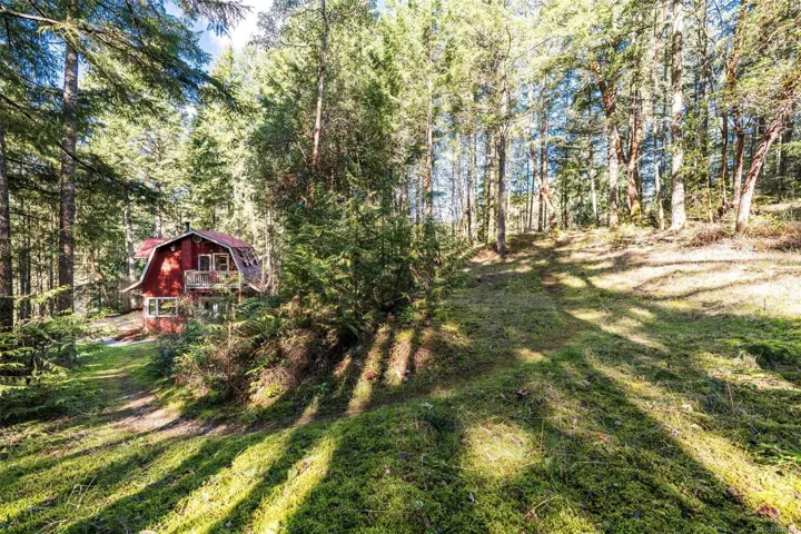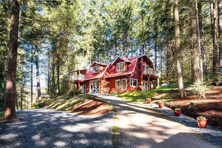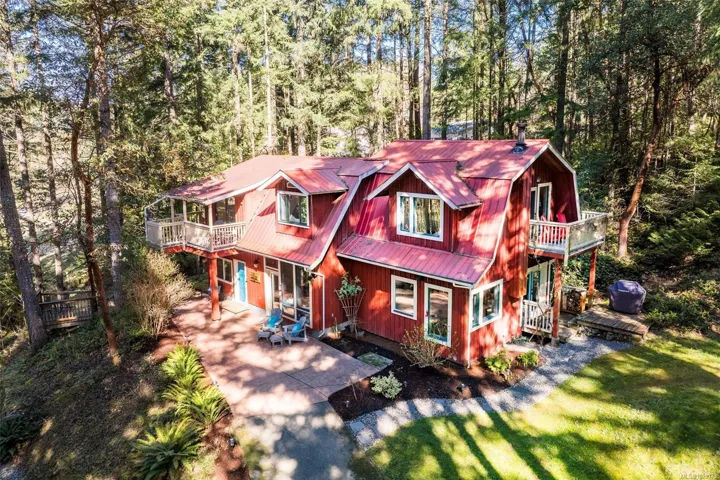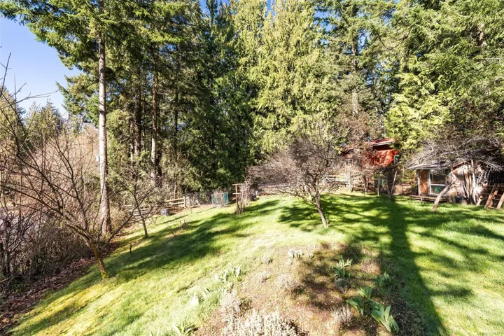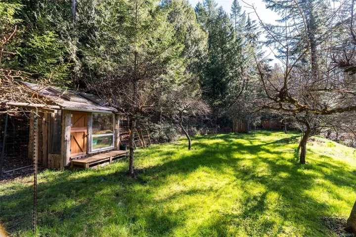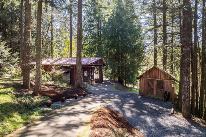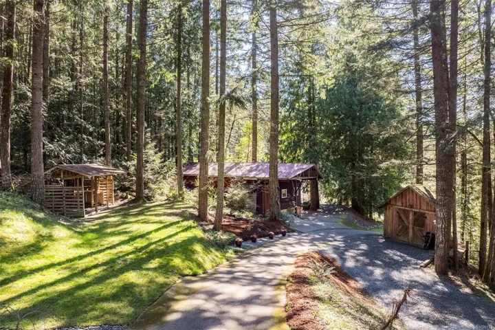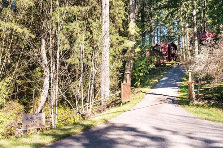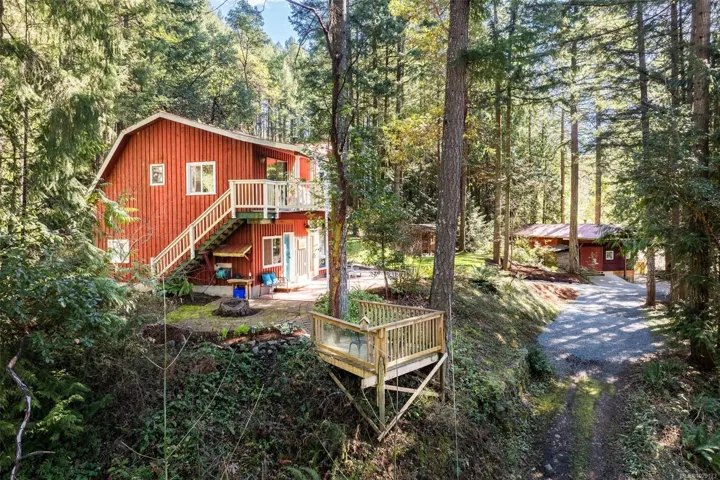 Welcome to Little Orchard House in Cobble Hill, set on a gentle hillside overlooking a private forest bathed in sunlight. This 2-bed + den home features oak flooring, a wood-burning stove, and a spacious country kitchen. Upstairs offers a den with custom walnut millwork and a primary suite with private balcony and ensuite with deep soaker tub. The lower-level mudroom provides flexible space and potential for a 3rd bedroom. Every window throughout frames peaceful natural views. The 3.29-acre fully fenced property includes an orchard and additional road access at the back of the property. The lower meadow with seasonal pond and fire pit was previously a horse paddock. The 48’x23′ over-heightshop is insulated, heated, and includes an overhead I-beam—ideal for trades or potential additional accommodation. A serviced RV pad adds further flexibility. The property suits animals and a rural lifestyle. Minutes to wineries, Duncan, Cowichan Bay, and Shawnigan Lake.