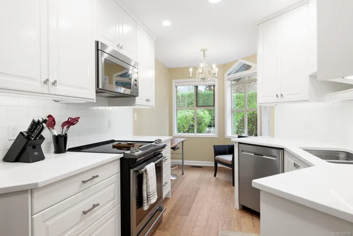 This updated 3-bedroom, 3-bathroom Royal Oak townhome offers the convenience and ease of main-level living. The thoughtfully designed floor plan features a main-level primary suite complete with a walk-in closet and full ensuite. The light-filled living and dining areas are spacious and inviting, highlighted by a cozy gas fireplace and sundeck – perfect for relaxing or entertaining. A breakfast nook adjoins the crisp updated kitchen, which offers plenty of natural light. This level also features an office, laundry and powder room. Upstairs are 2 good sized bedrooms, a storage room, and a 5-piece bathroom. This convenient and central location is close to Broadmead Shopping Centre and transit, with downtown Victoria a quick 15-minute drive away. This is a fantastic opportunity to enjoy comfort, convenience, and lifestyle in one of Victoria’s most sought-after neighbourhoods. Immediate possession.