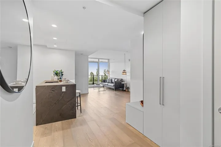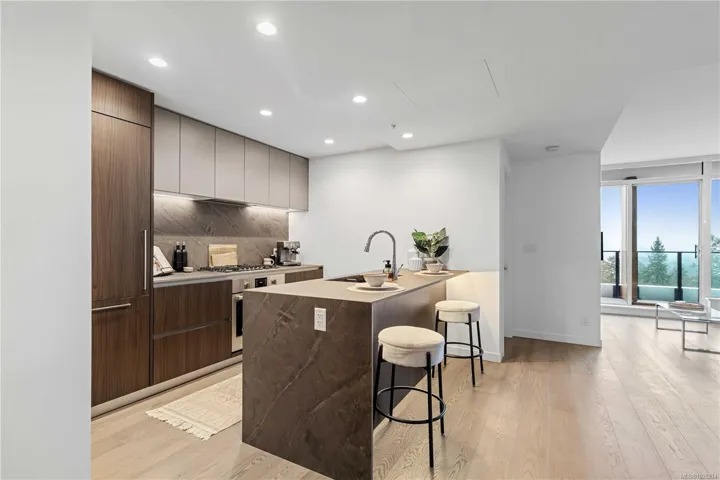 MOTIVATED SELLER. Experience elevated living at One Bear Mountain—where luxury, lifestyle, and breathtaking natural beauty come together seamlessly. This beautifully designed condo showcases engineered hardwood flooring, cozy gas fireplace, & sweeping views of Mt. Baker from both the kitchen & living room. Step out onto the expansive balcony—an ideal space to unwind, entertain, and take in the surrounding scenery. Residents enjoy an exceptional collection of resort-style amenities, including a fully equipped fitness centre, yoga studio, and a stunning 6th flr terrace w/ fire bowl. Host unforgettable evenings in the private dining room, relax poolside on the 15th flr, or gather in the Grenoble Sky Lounge & terrace w/ panoramic views. A business centre w/ meeting rooms and hoteling stations enhances remote work. Perfectly positioned just steps from Bear Mountain’s world-class golf courses, tennis facilities, & incredible mountain biking, this is more than a home—it’s a lifestyle.