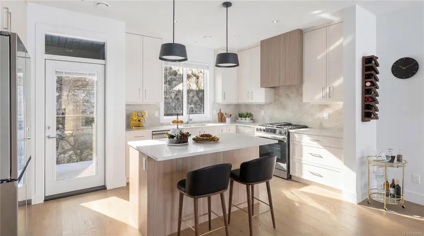 Brand new and meticulously crafted. Discover contemporary living in this impressive half duplex built by Designated Developments. Offering 4 bedrooms, a den, and 4 bathrooms, the spacious main level features an open-concept kitchen, dining, and living area designed for effortless entertaining. The stylish kitchen blends form and function, while the inviting living room is anchored by a cozy gas fireplace. The main level also features a covered back patio and a large balcony off the front. Upstairs, the bright generous primary suite offers an expansive view with its own ensuite. Downstairs, a separate entrance leads to a self-contained legal 1-bedroom in-law suite—ideal for extended family or rental income. Complete with a single-car garage, interlock driveway, and located close to new schools, golf, beaches, and everyday amenities. Price excludes GST. A must-see opportunity!