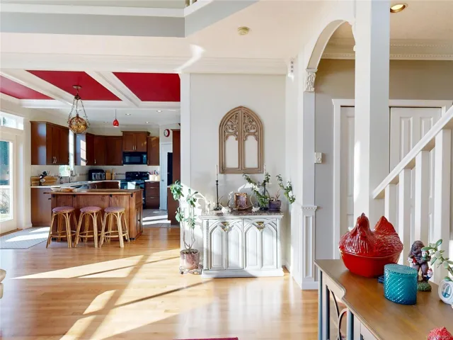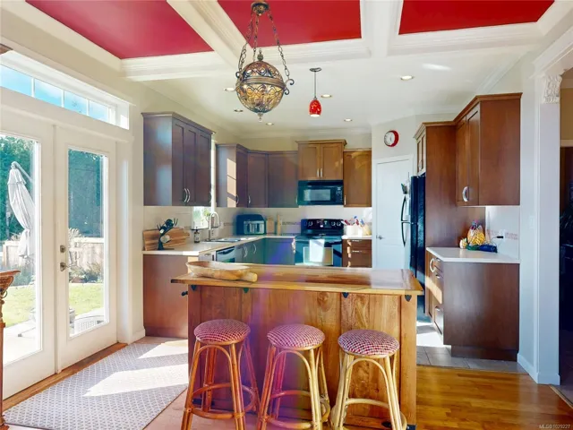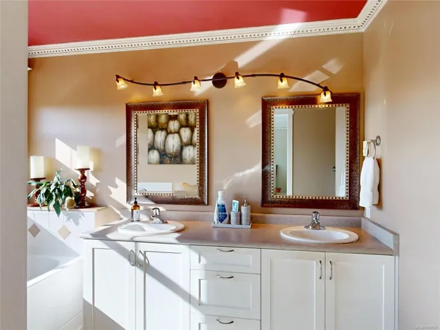 This beautifully updated Creekside home offers over 2,000 sq.ft. of stylish, functional living with 3 bedrooms and 3 bathrooms in one of Sunriver’s most desirable locations. The open-concept main level features a spacious great room with soaring 19’ ceilings, a cozy gas fireplace, and a well-designed kitchen with island, adjacent to a bright dining area with coffered ceilings. Numerous upgrades include crown mouldings throughout and elegant granite window sills. French doors lead to a perfectly manicured, sun-drenched rear yard with many perennials and fruit trees – ideal for entertaining or relaxing while enjoying impressive views over the Sunriver development. Upstairs offers a versatile loft, generous bedrooms, and a well-appointed primary suite with walk-in closet and ensuite. Situated on a quiet cul-de-sac on the Victoria side of Sooke, this home provides easy access to the Westshore and downtown Victoria