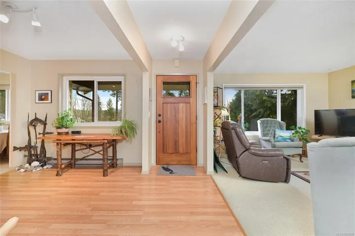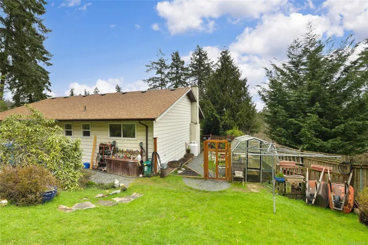 Nestled in a peaceful rural setting surrounded by lush greenery, vibrant gardens, and sweeping mountain, valley, and vineyard views, this charming 3-bed rancher blends comfort with classic country style. The interior offers a warm, welcoming atmosphere with wide doorways, a cozy propane fireplace, an inviting kitchen with updated appliances and Oak cabinets, spacious laundry room, large crawlspace, Primary bedroom complete with walk-in closet and ensuite. Recent upgrades include vinyl windows, deck, roof and gutters. Outside, the property features fruit trees, established gardens, a greenhouse, raised garden beds, multiple seating areas, a striking statement front door, an attached carport, generous storage, a greenhouse, fenced garden area, and peaceful walking paths and a beautiful arbutus tree. Enjoy plenty of parking as well! All of this is set within a vibrant rural community surrounded by rolling farmland, scenic backroads, local markets, wineries, and endless outdoor activities.